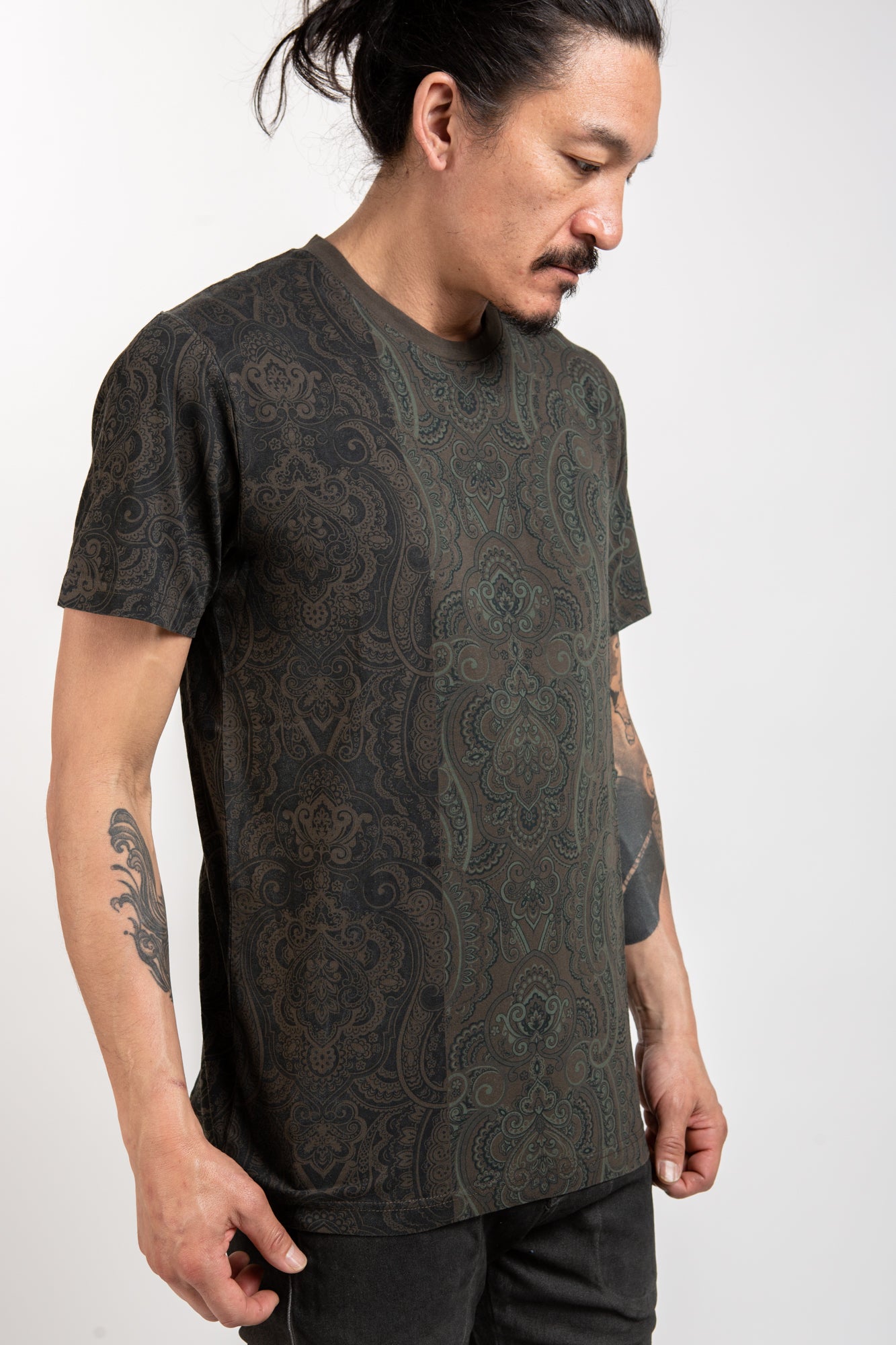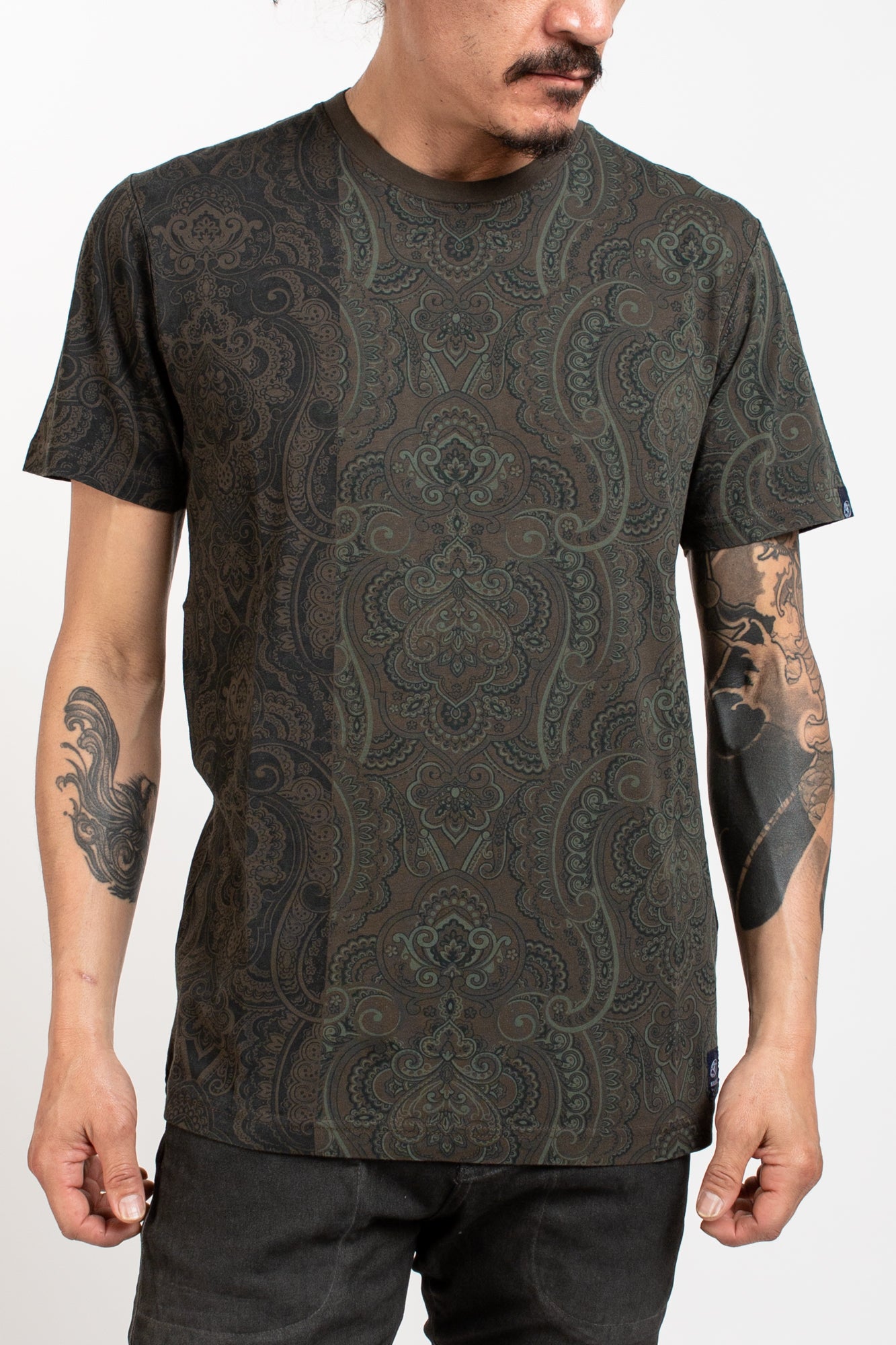 Be stylish and comfortable in the NIMANZ TEE - MINARET. Featuring a unique minaret design, this army green tee shirt has a crew neck and is crafted from breathable cotton. Perfect for a night out, the simple faded details make this an essential wardrobe staple.