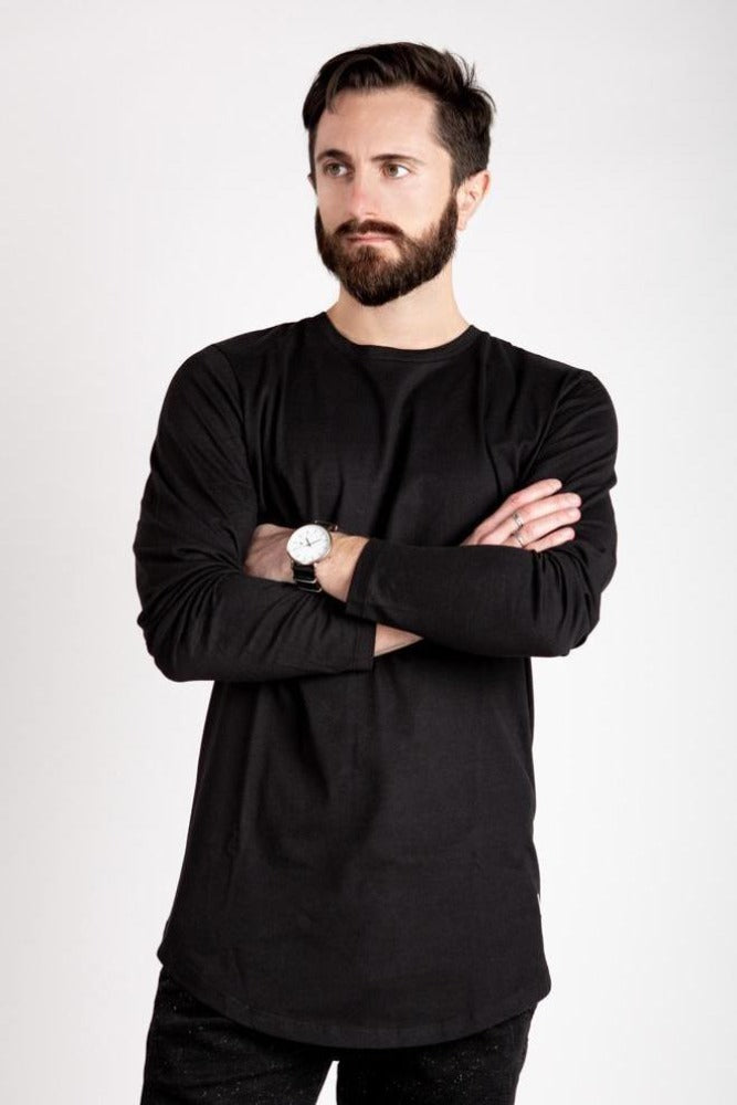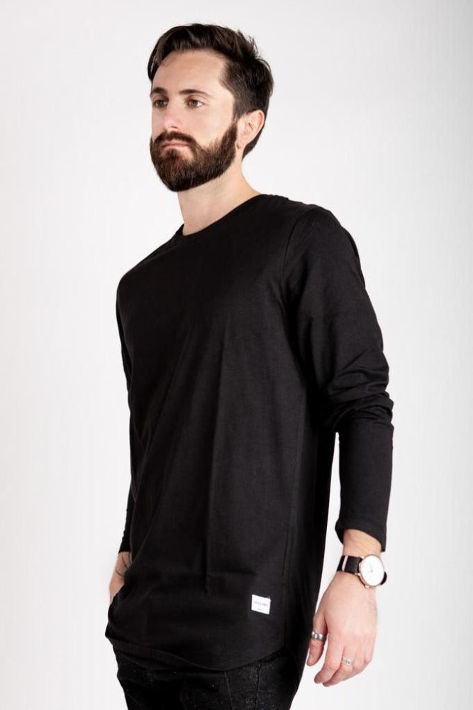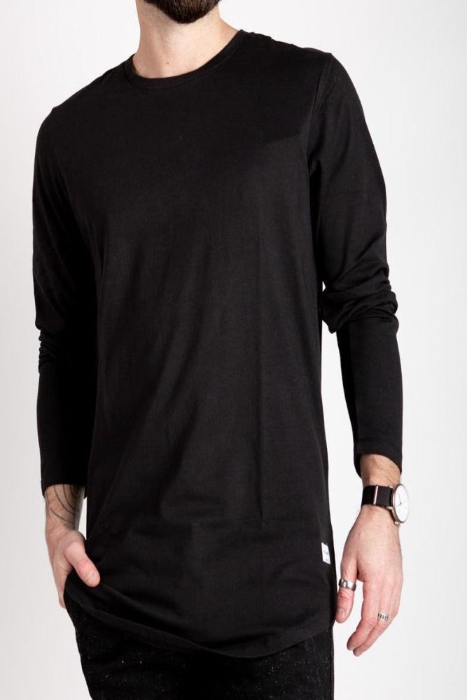 Men's long sleeve tee with crew neck in black. Regular fit.
