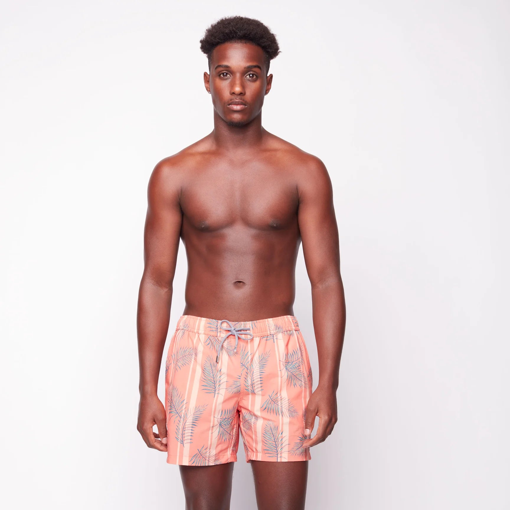 Pack your bags and transport yourself to the tropics in the PALM LEAVES K.I.T. Volley Classic Fit Compression swim short by PUBLIC BEACH. Designed with a palm and superimposed stripe print and cut from quick-drying stretch fabric for flexible movement, they’re lined with a breathable compression short to offer the ultimate support where you need it most. These vacation essentials are finished with an elasticized drawstring waistband for an adjustable fit, plus two side-entry pockets and a Velcro-flap back compartment to keep your valuables on hand and safely in place, whether you're lounging at the pool or hitting the beach bar.