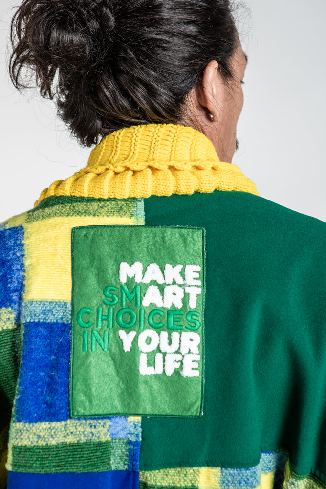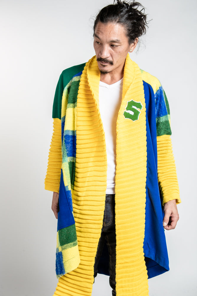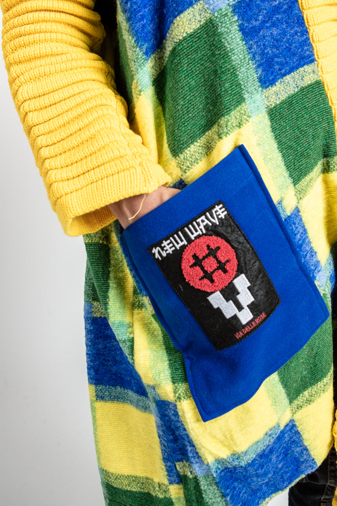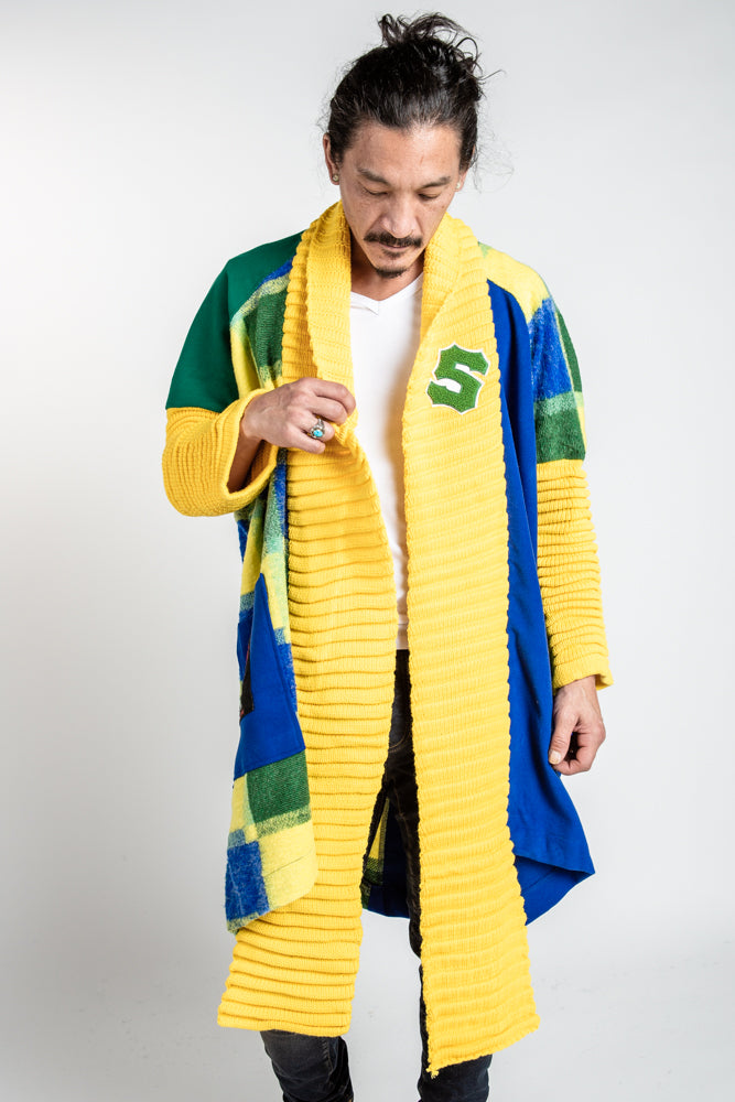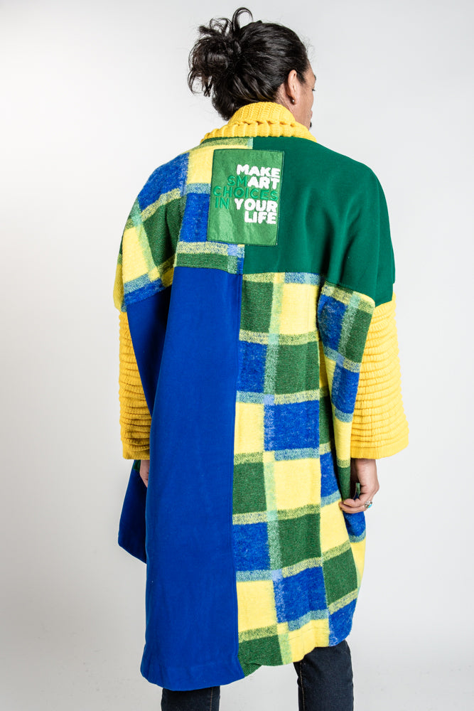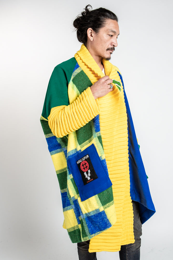 This patchwork cardigan is a Japanese-inspired work of art. Crafted with a unique combination of plaids, patterns, and colourful patches, this one-of-a-kind garment is available in limited quantities. The perfect fit for al