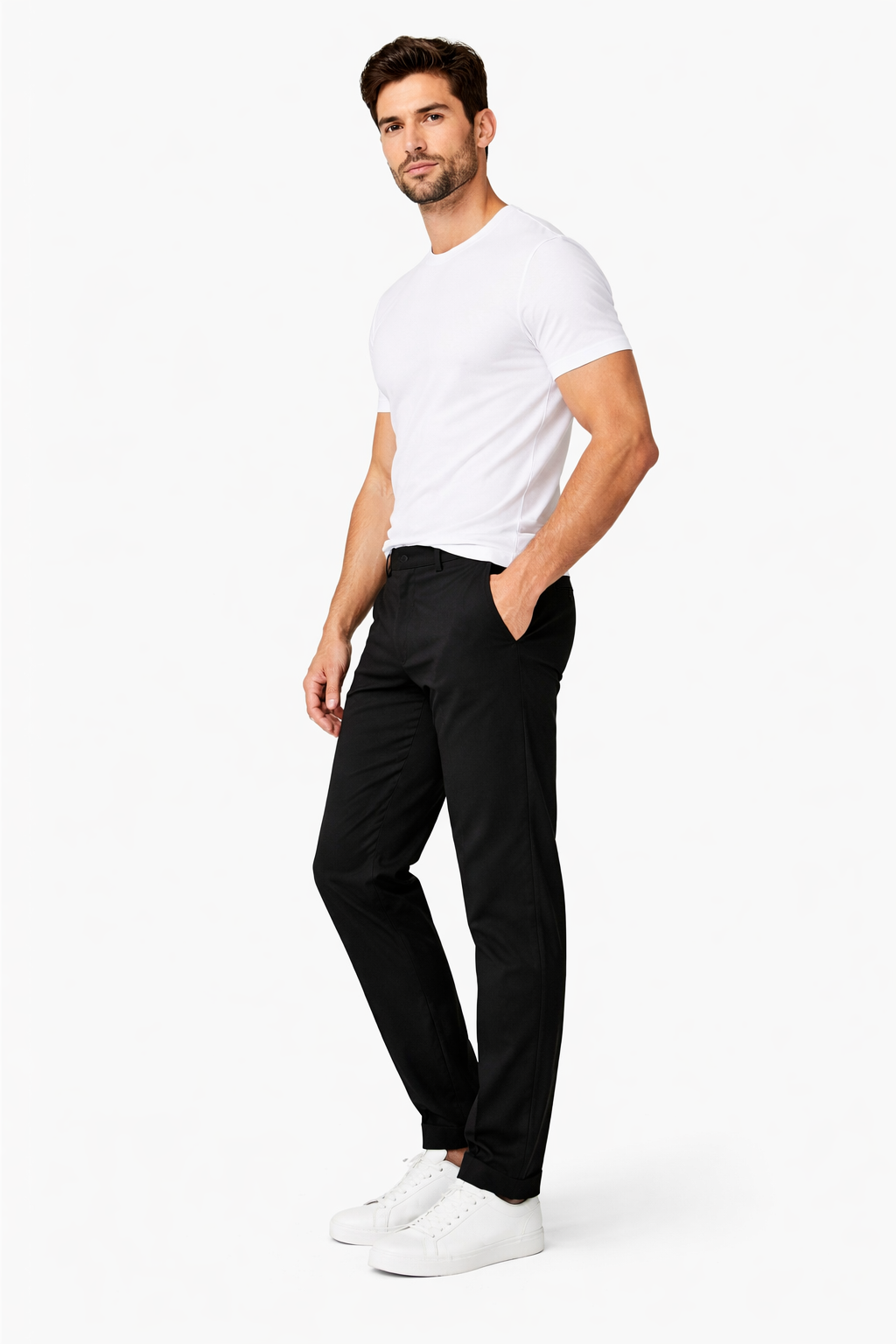 Sleek, modern, and built for comfort, this relaxed chino delivers a clean silhouette with everyday versatility. The smooth, stretch-infused fabric offers a refined finish while allowing ease of movement throughout the day. Designed with a slightly relaxed fit, it pairs effortlessly with everything from minimal tees to structured outerwear, making it a staple for both casual and elevated looks.