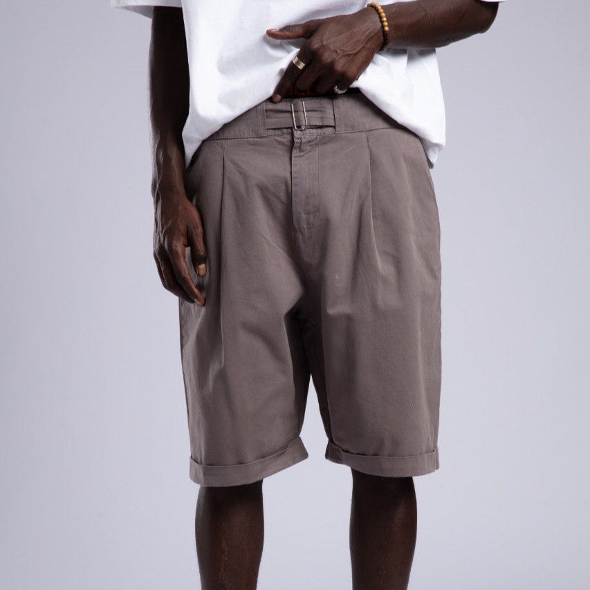 Elevated ease in a modern neutral. The Canyon Pleated Shorts in Dust Grey offer the same relaxed silhouette and tailored structure as the original, now in a soft, understated tone that goes with everything. Crafted from a breathable cotton-linen blend, these shorts feature crisp front pleats, rolled hems, and a comfortable mid-knee length.
