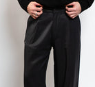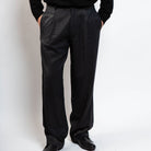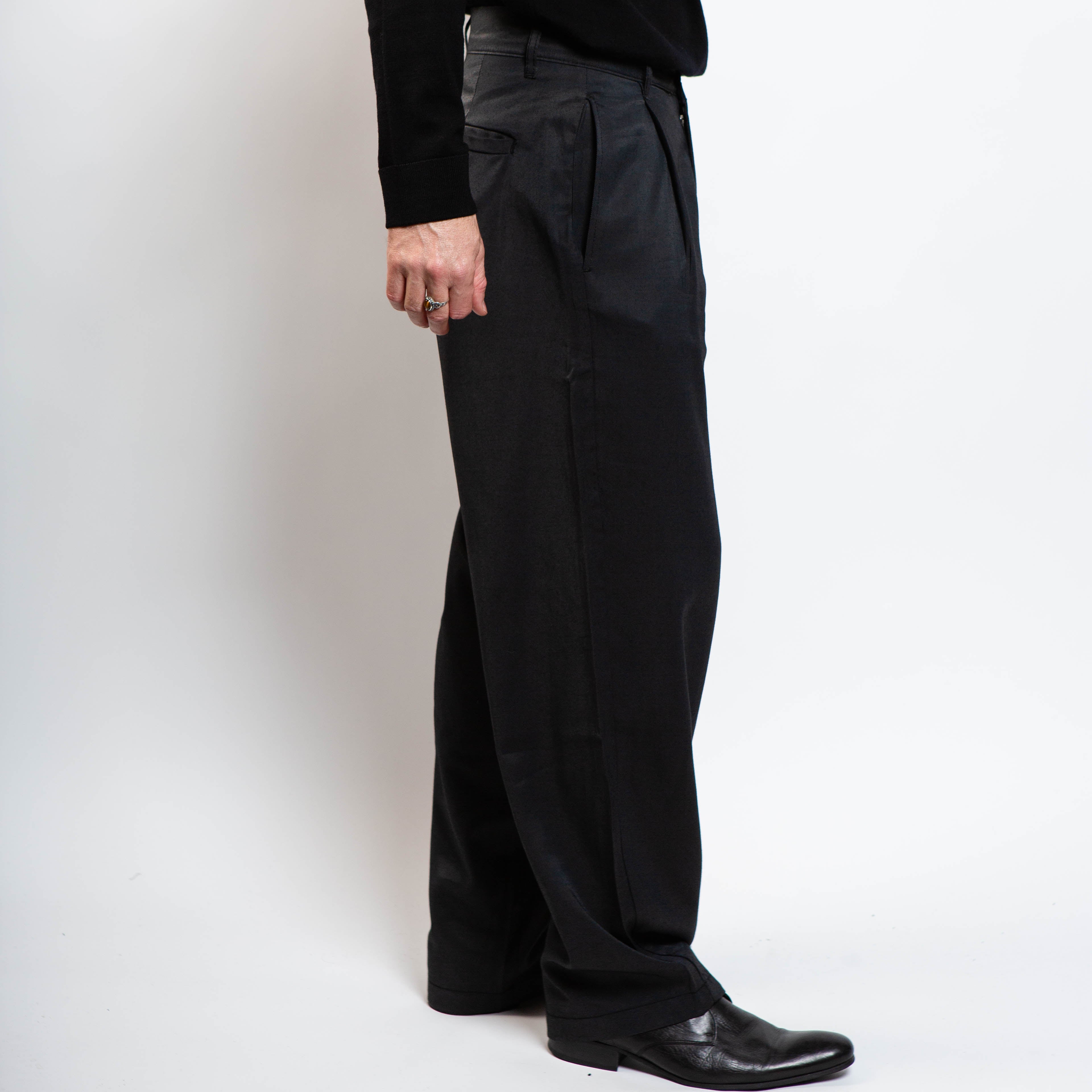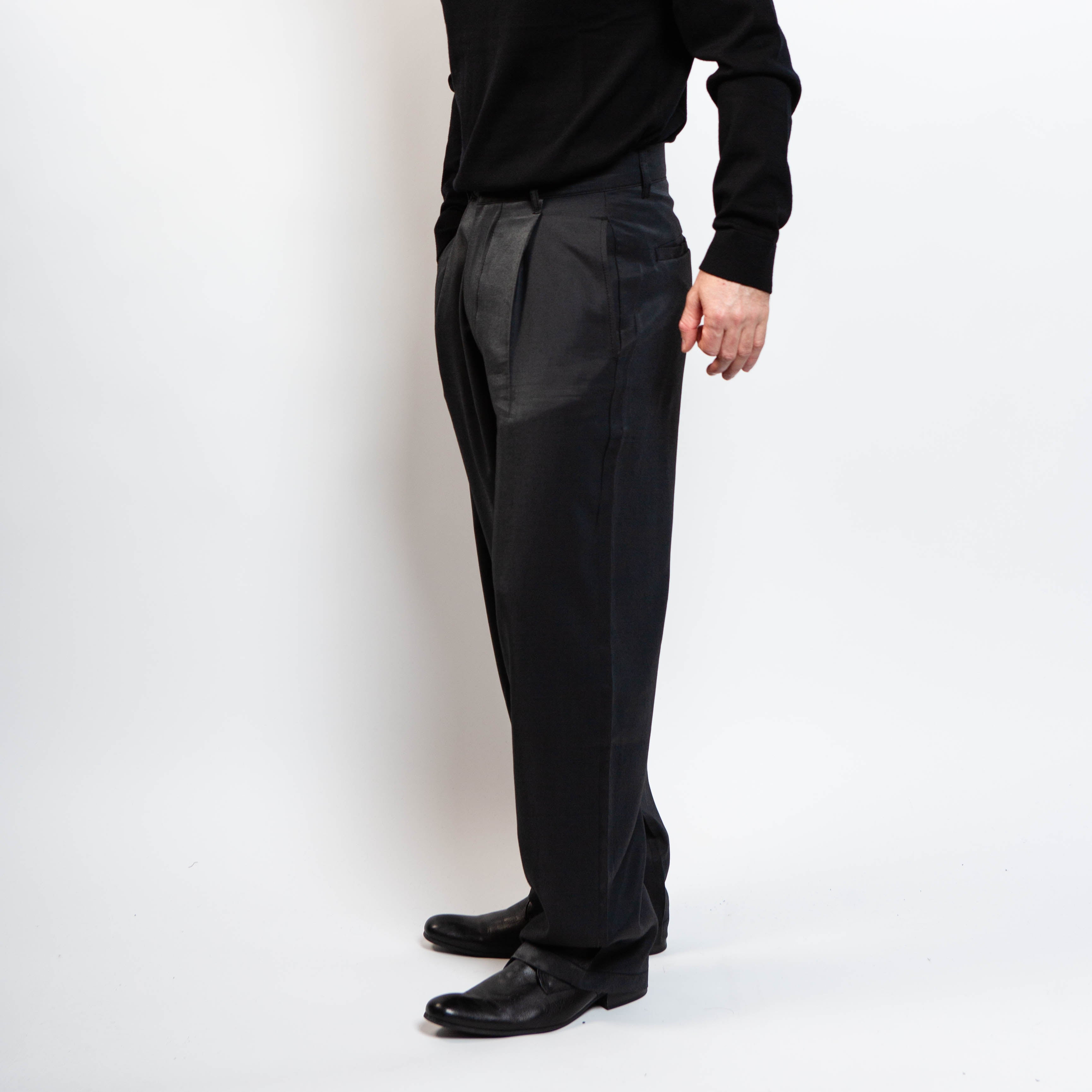 These Pleated Trousers in charcoal cotton blend combine relaxed tailoring with timeless versatility. Designed with a high-rise waist and wide leg, they deliver ease and movement while maintaining a sharp, structured silhouette. The breathable cotton blend offers year-round comfort and a refined matte finish — ideal for both casual sophistication and elevated styling.