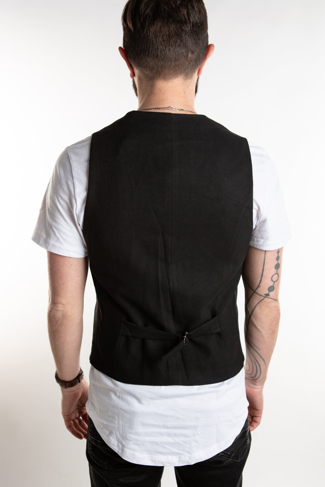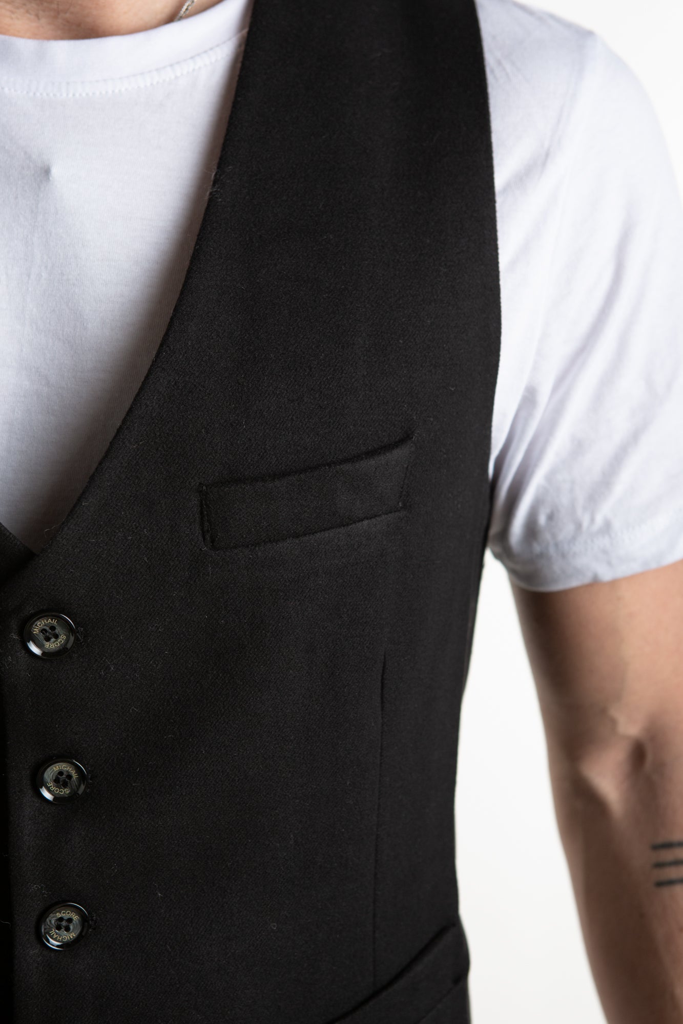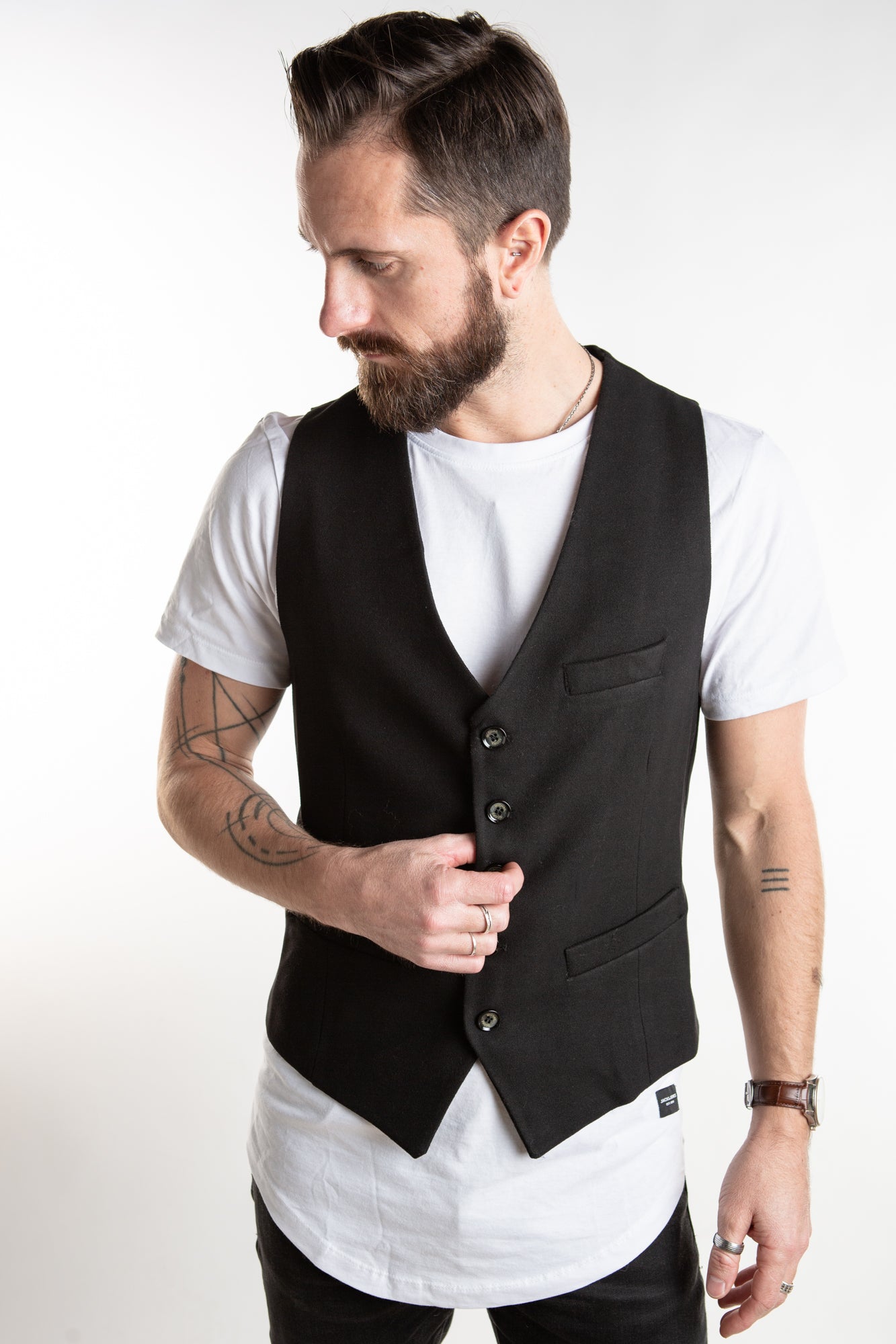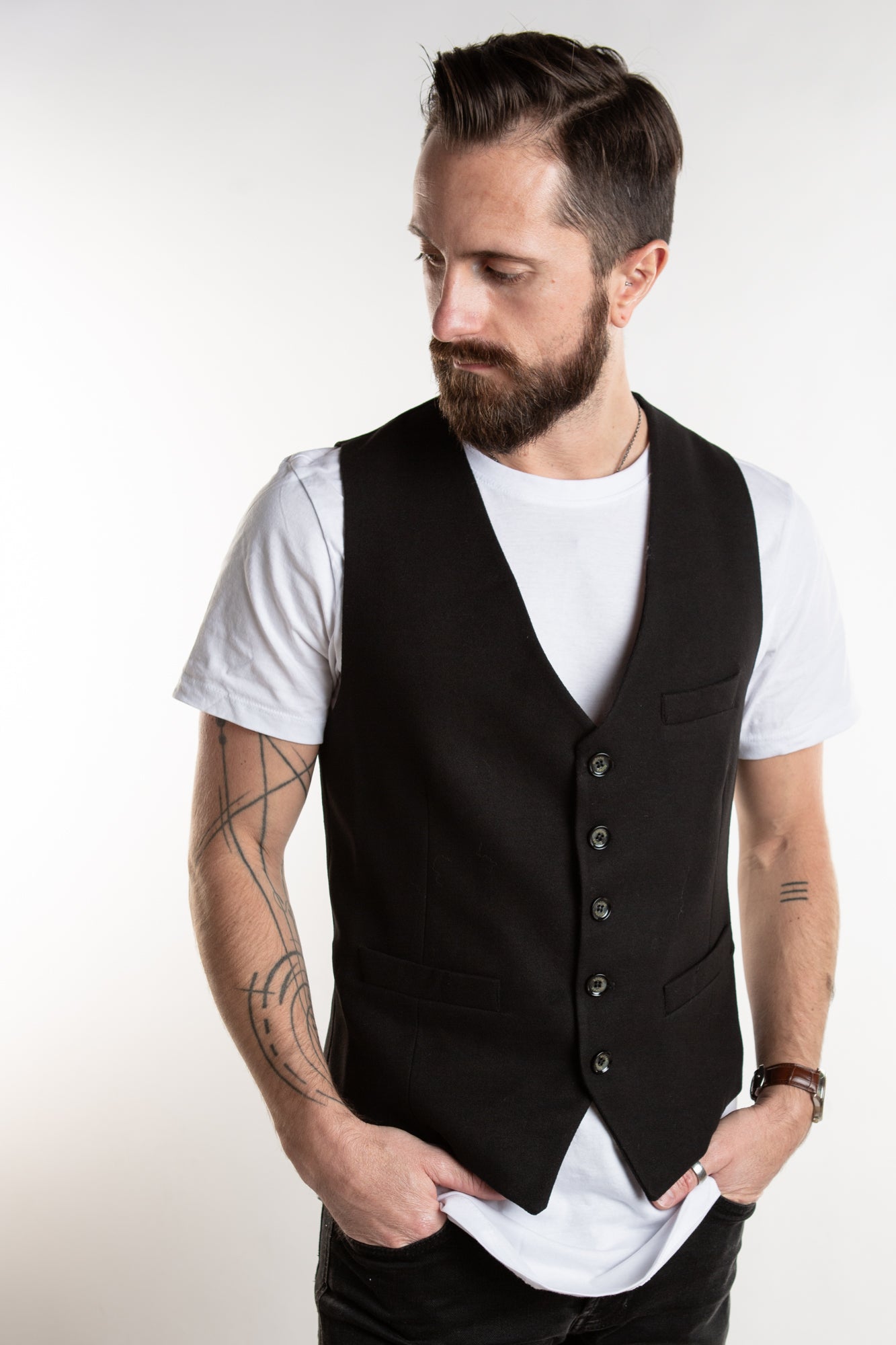 Coffee color waistcoat with lapel collar for men. Slim fit 5 buttons single breasted closure. Can be worn over a t-shirt, long sleeve shirt or dress shirt.