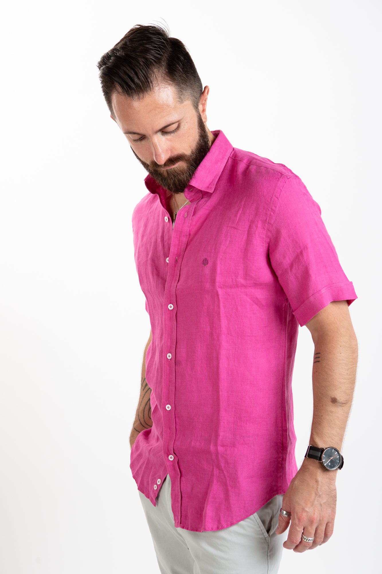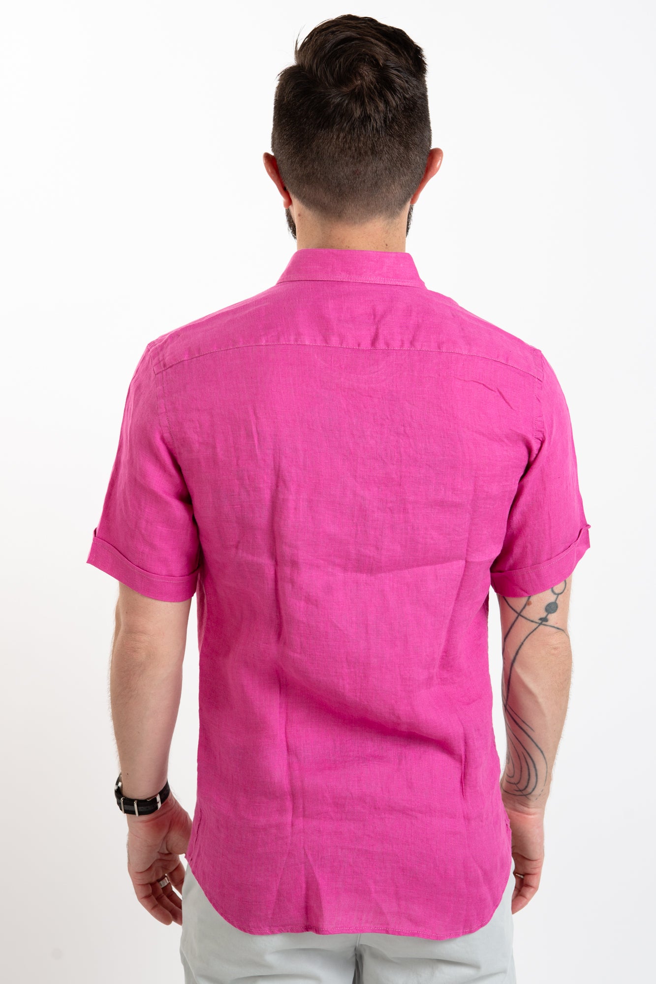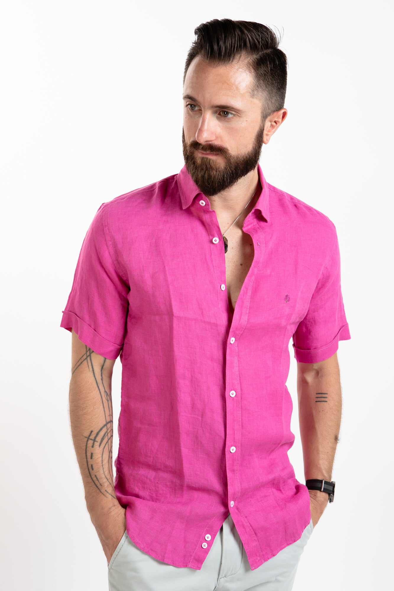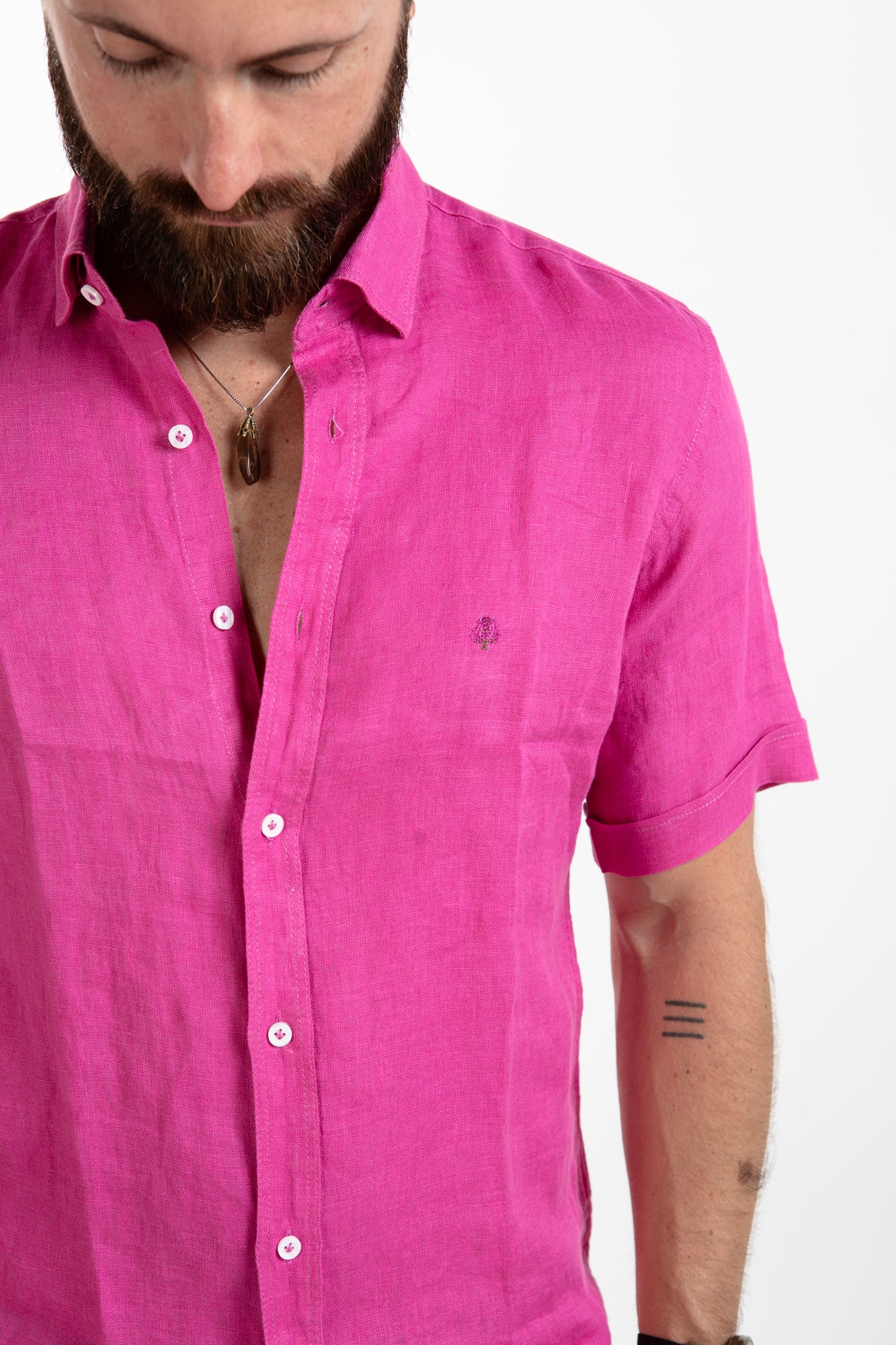 This SHORT SLEEVE LINEN SHIRT from our luxury collection is an ideal choice for anyone seeking class and style. Crafted from lightweight linen, this white button-up is perfect for summer days and evenings and exudes an aura of sophistication. With its subtle plain colors, this timeless garment is a must-have for any discerning fashionista.