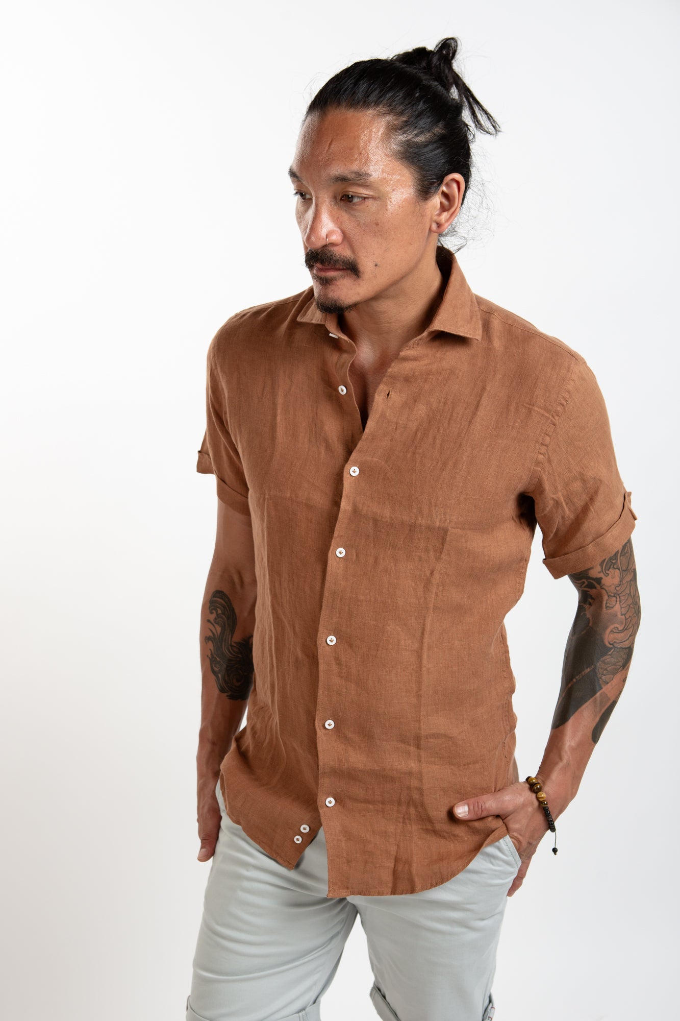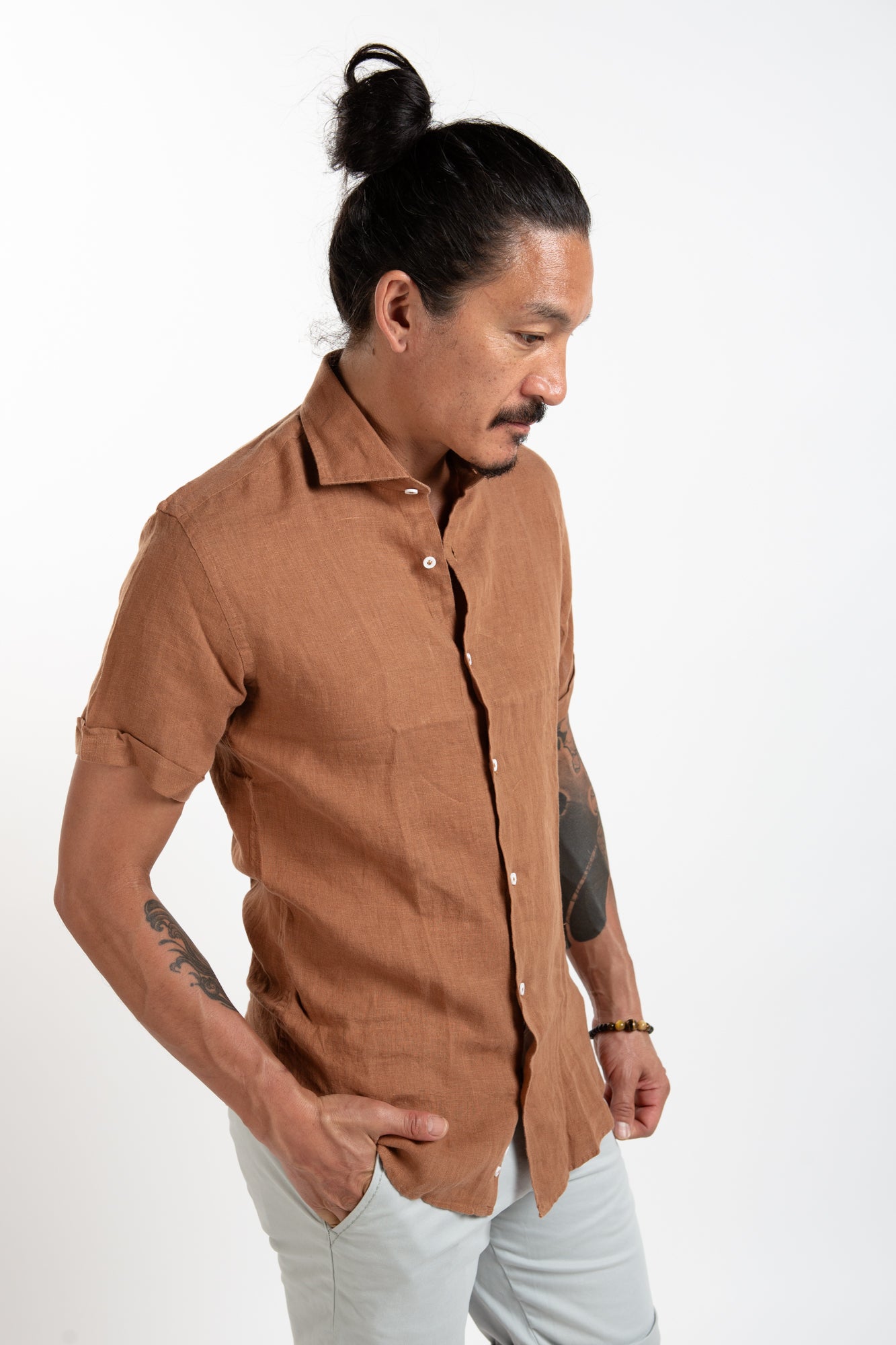Short Sleeve Linen Shirt - Mocha