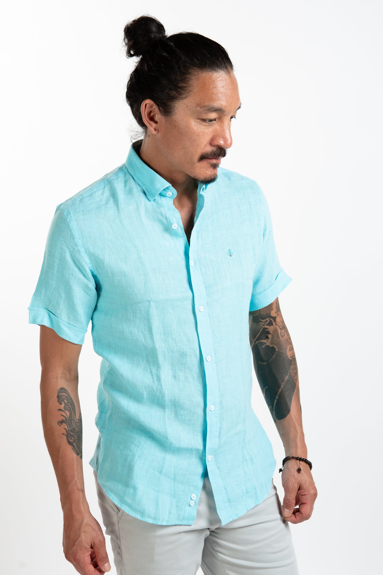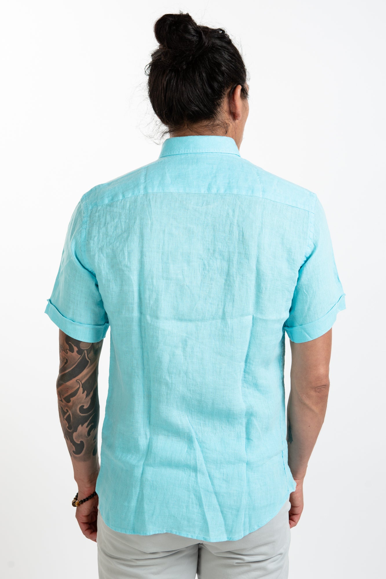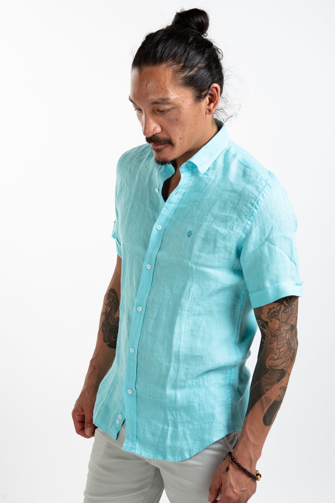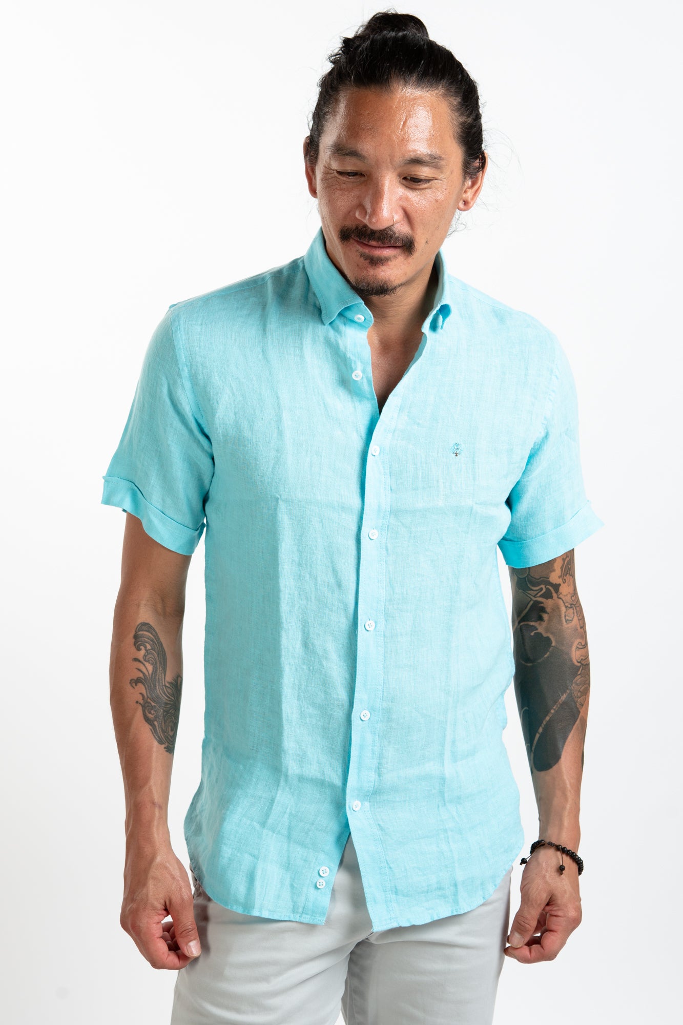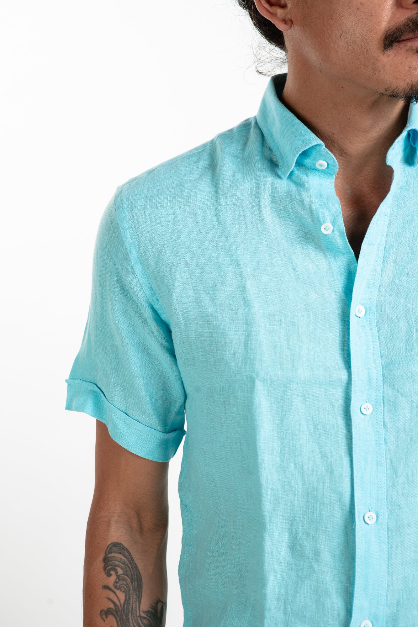 This SHORT SLEEVE LINEN SHIRT from our luxury collection is an ideal choice for anyone seeking class and style. Crafted from lightweight linen, this white button-up is perfect for summer days and evenings and exudes an aura of sophistication. With its subtle plain colors, this timeless garment is a must-have for any discerning fashionista.