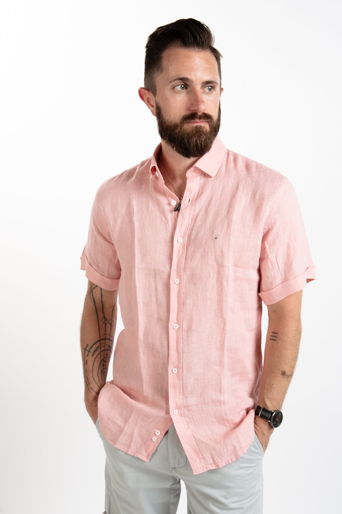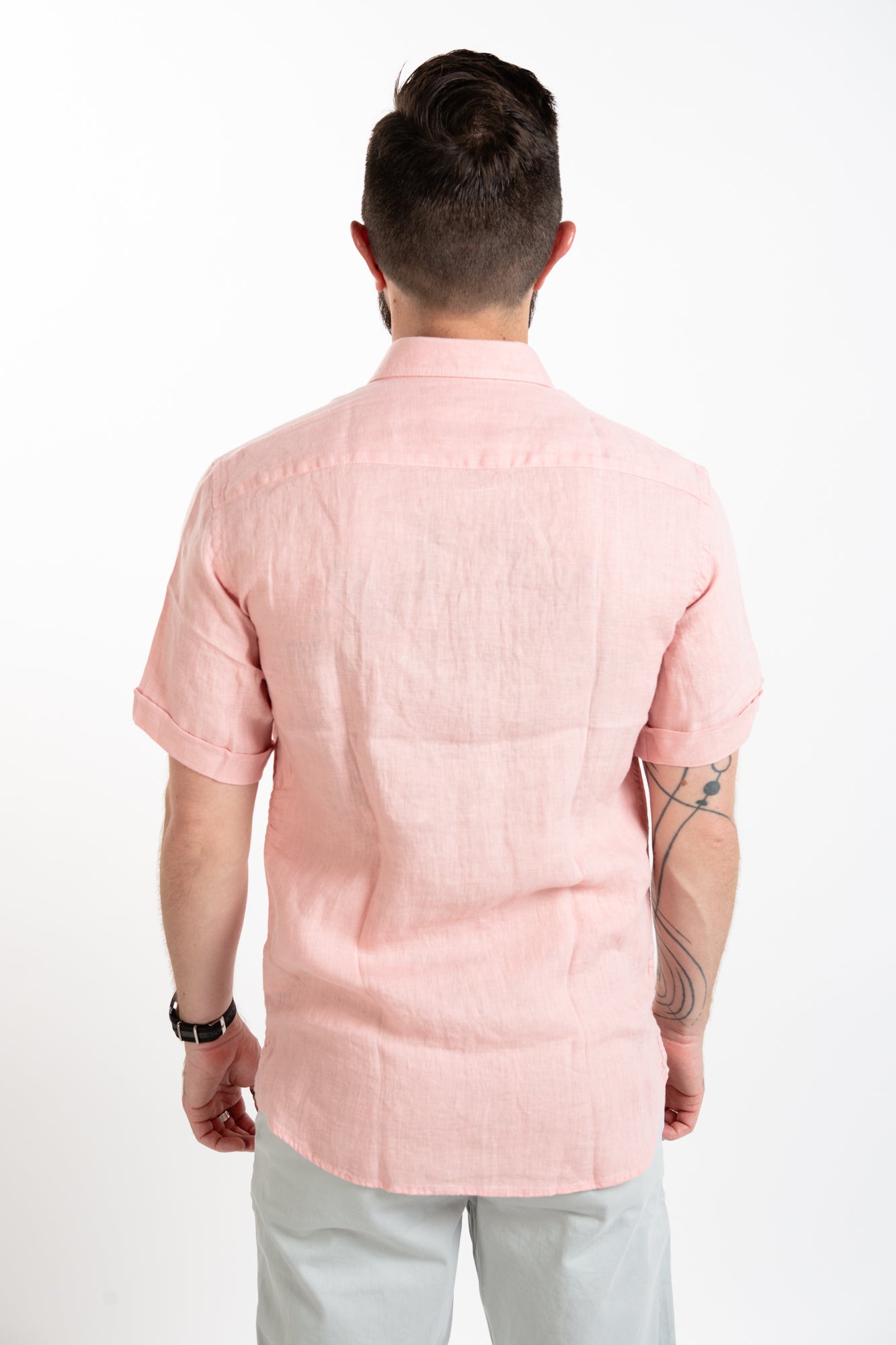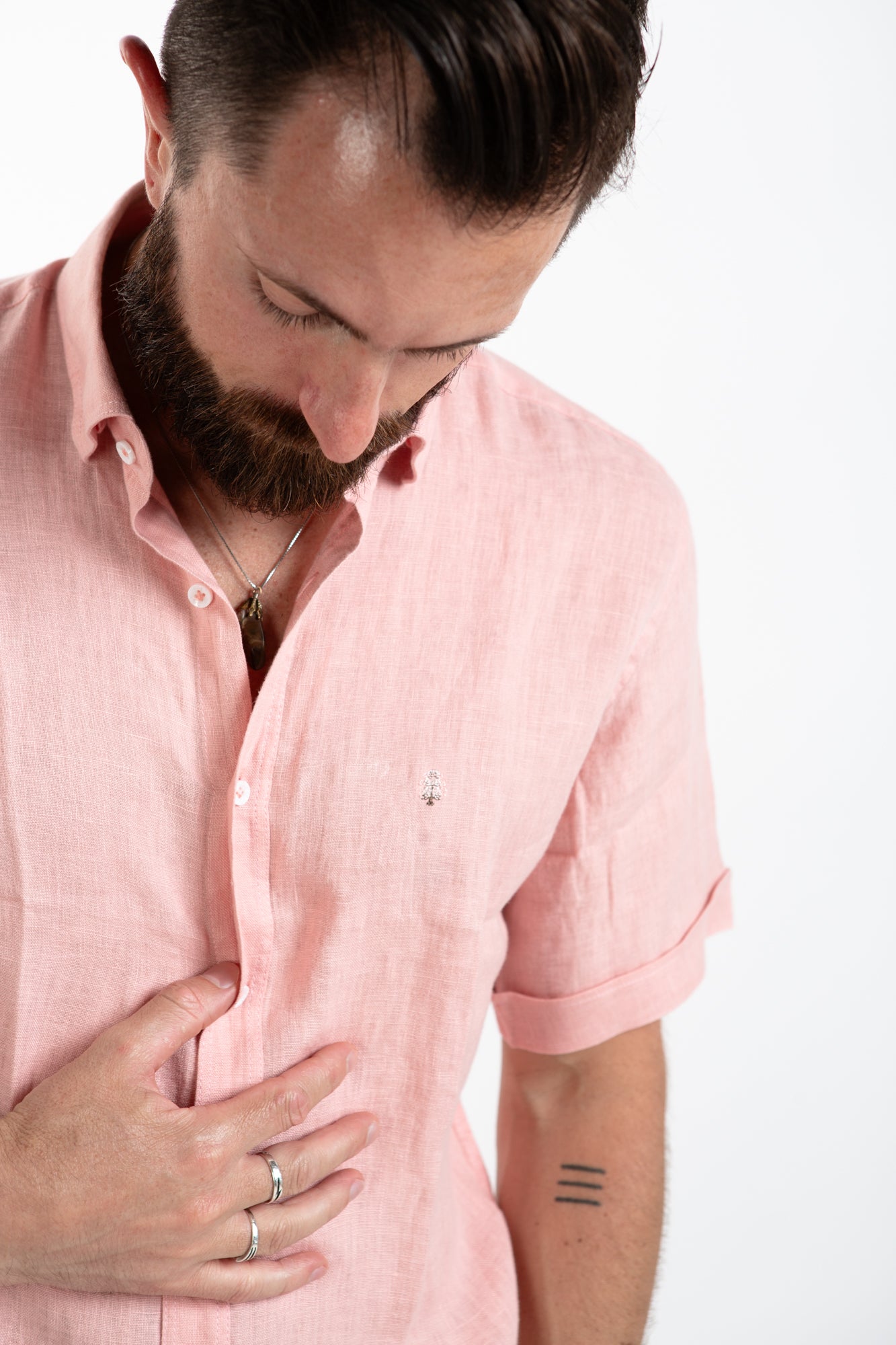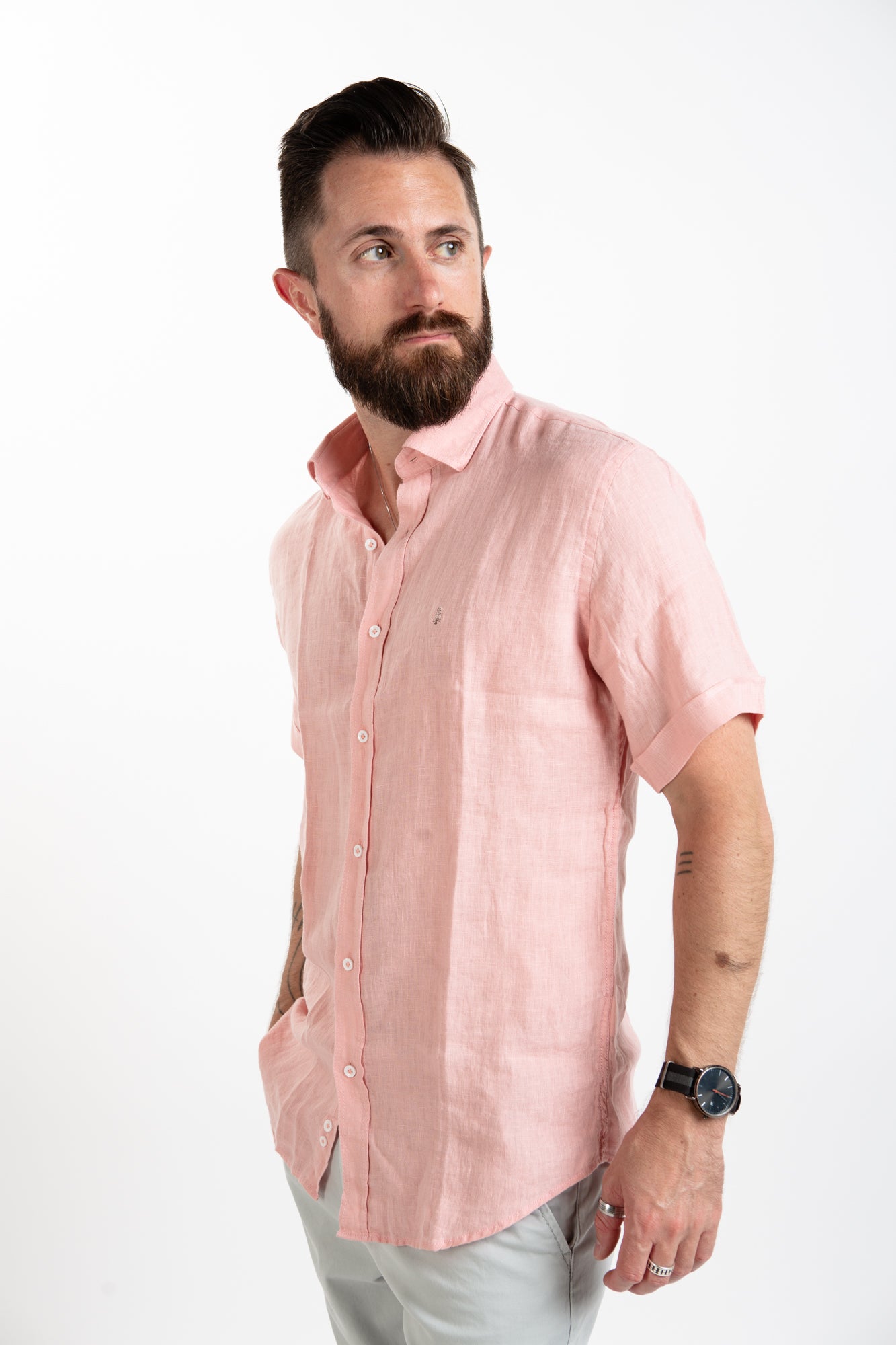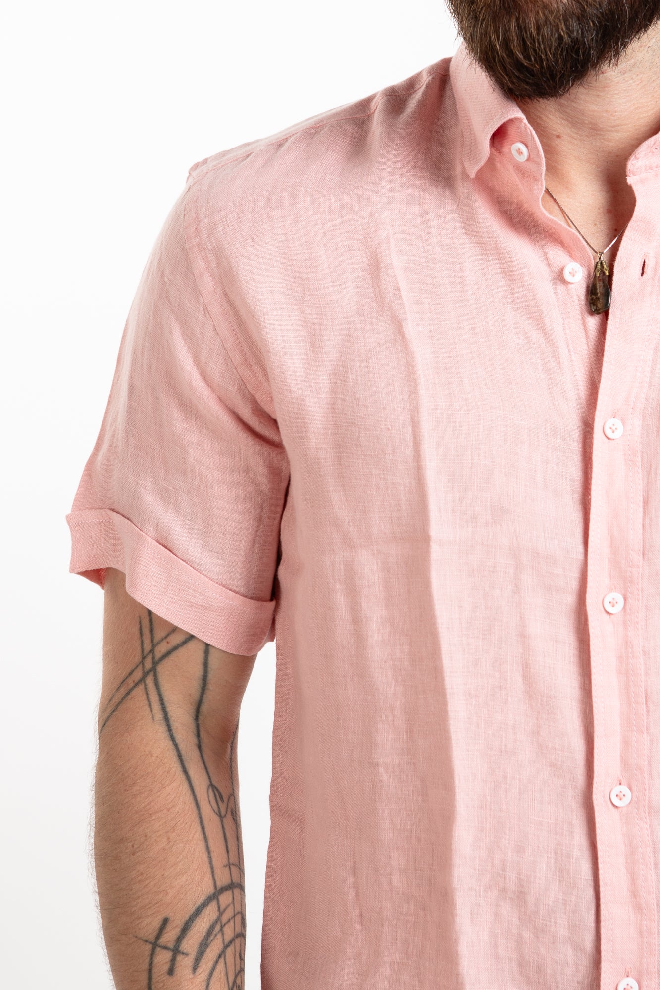 This SHORT SLEEVE LINEN SHIRT from our luxury collection is an ideal choice for anyone seeking class and style. Crafted from lightweight linen, this white button-up is perfect for summer days and evenings and exudes an aura of sophistication. With its subtle plain colors, this timeless garment is a must-have for any discerning fashionista.