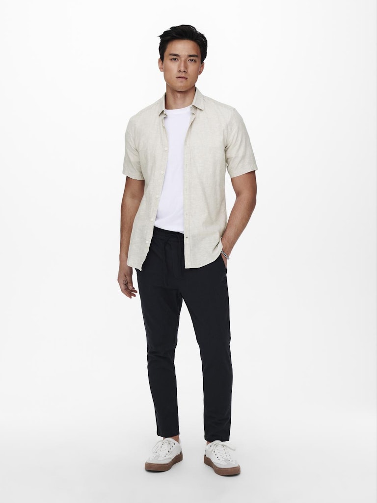Add a touch of sophistication to your wardrobe with our Short Sleeve Linen Shirt in elegant sand.