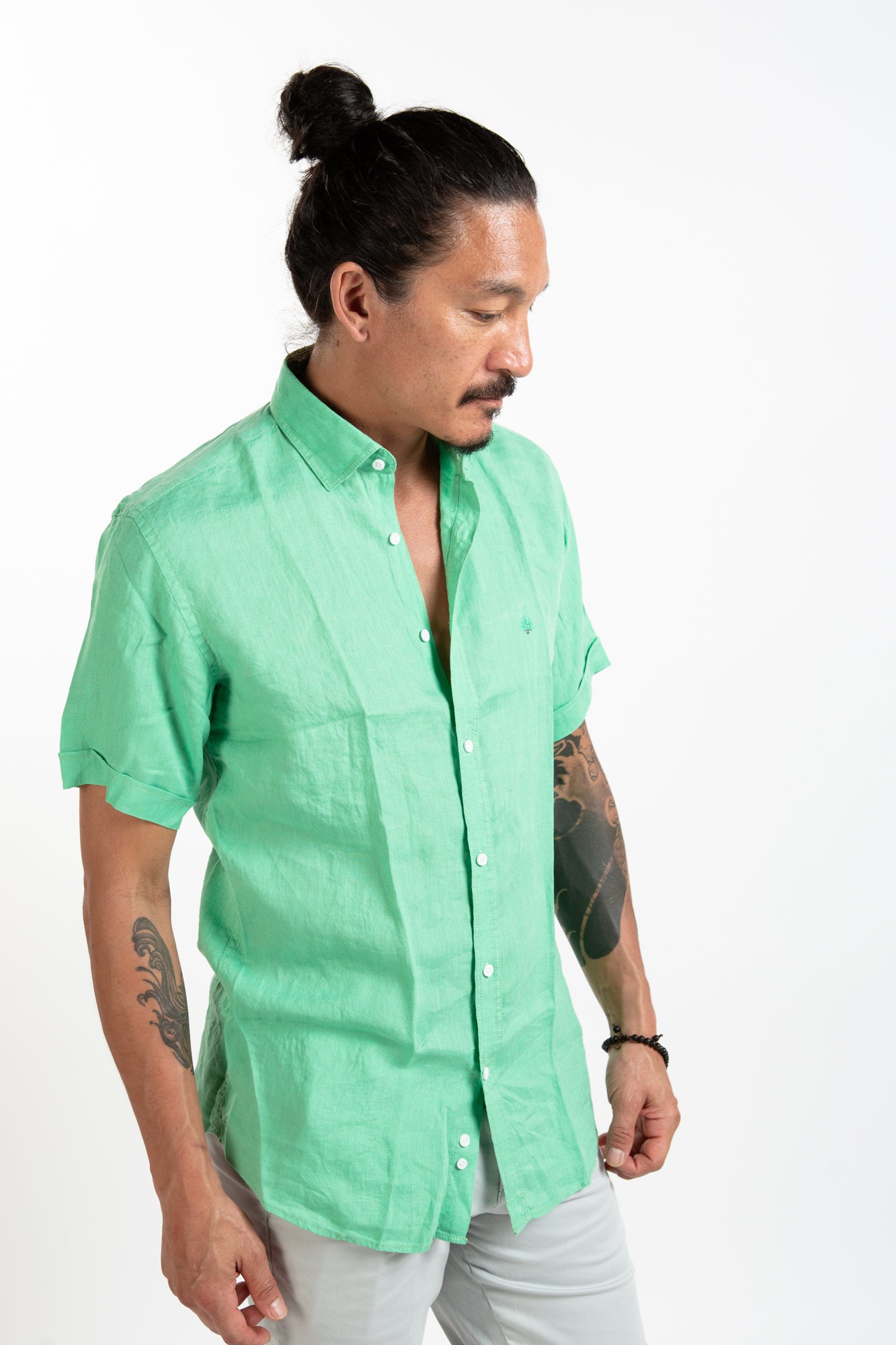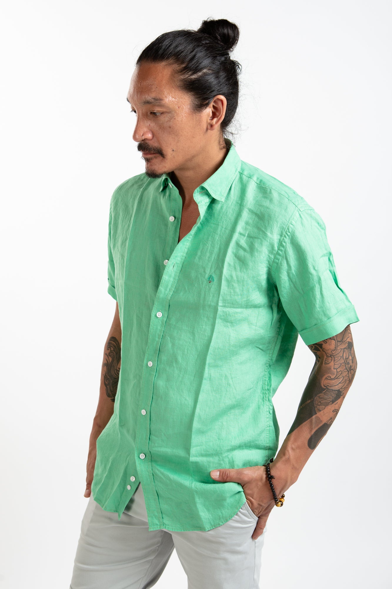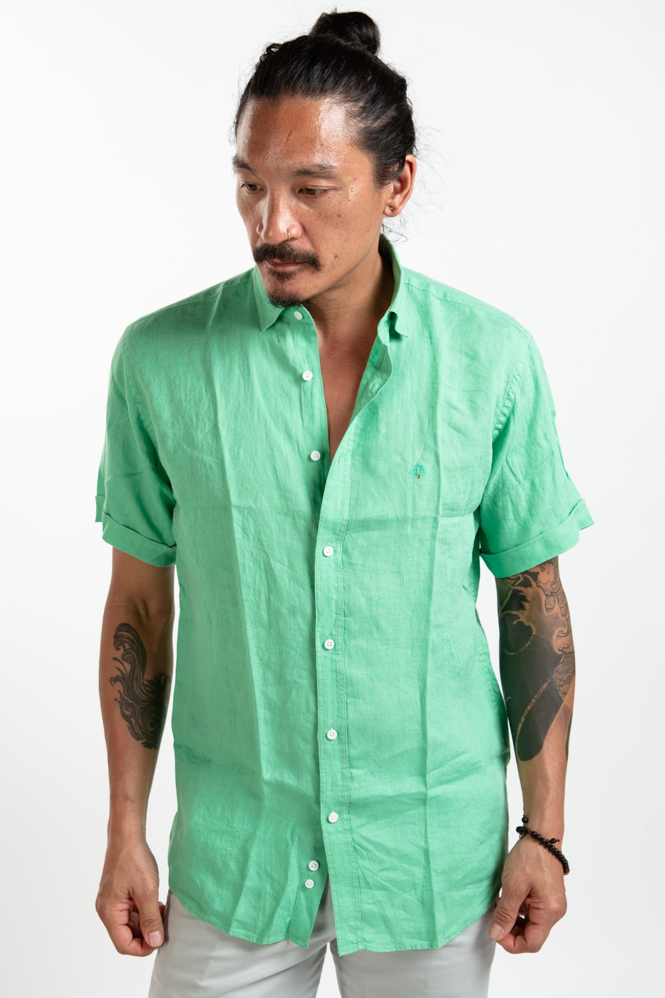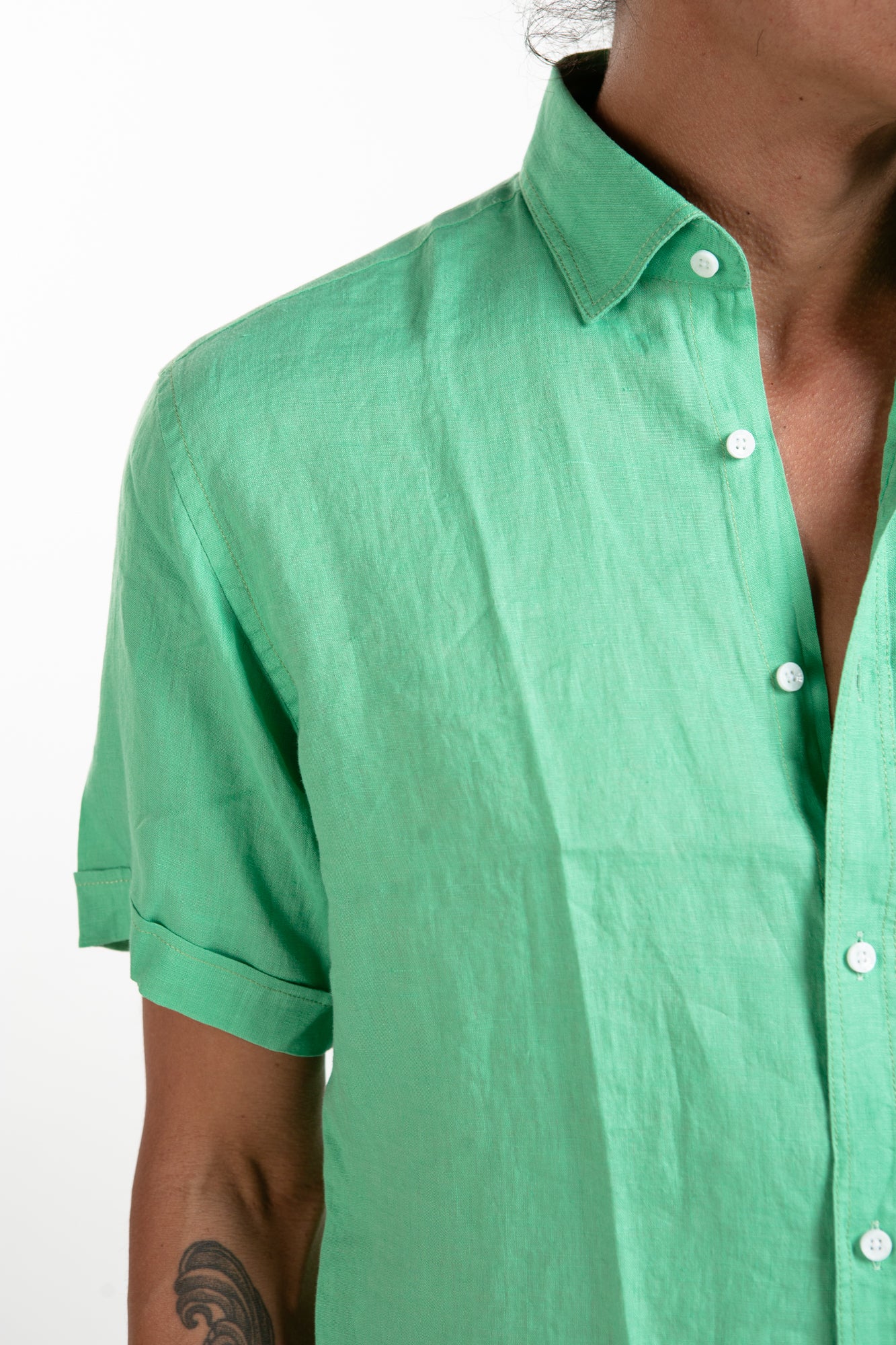 This SHORT SLEEVE LINEN SHIRT from our luxury collection is an ideal choice for anyone seeking class and style. Crafted from lightweight linen, this white button-up is perfect for summer days and evenings and exudes an aura of sophistication. With its subtle plain colors, this timeless garment is a must-have for any discerning fashionista.