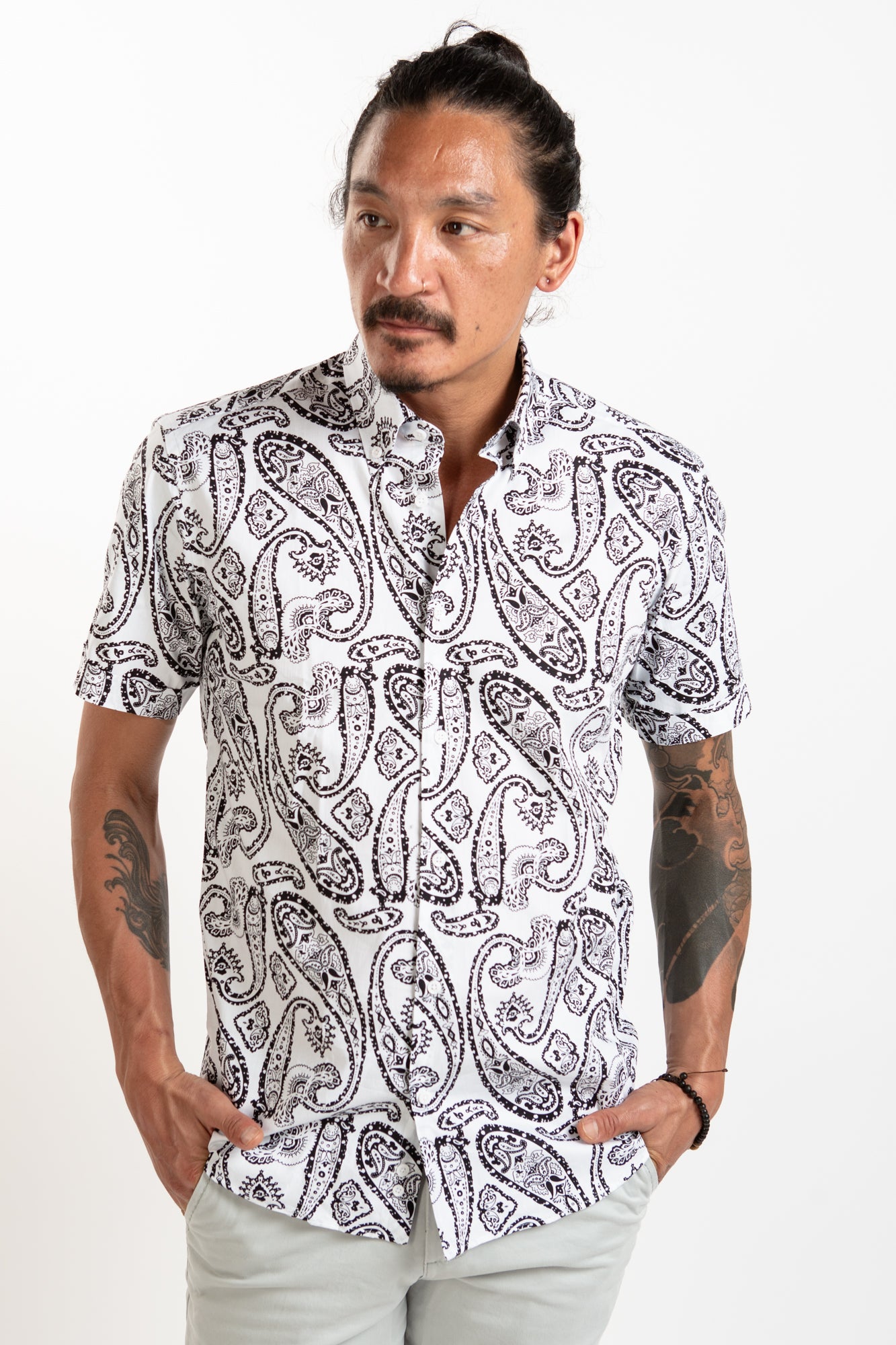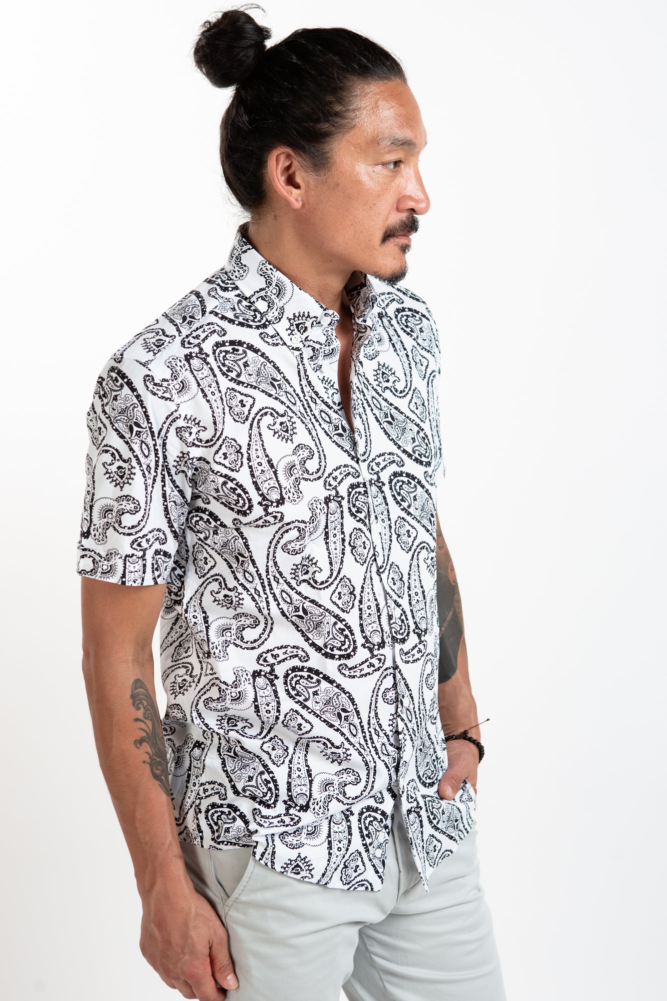 Are you ready to show off your summer fun? Our SHORT SLEEVE SHIRT - CACHEMIR is here to add pizzazz to your wardrobe! Crafted from 100% cotton, this button up print shirt will be sure to dress up any everyday look. Get ready to turn heads and be the talk of the town! (In a good way, of course!)