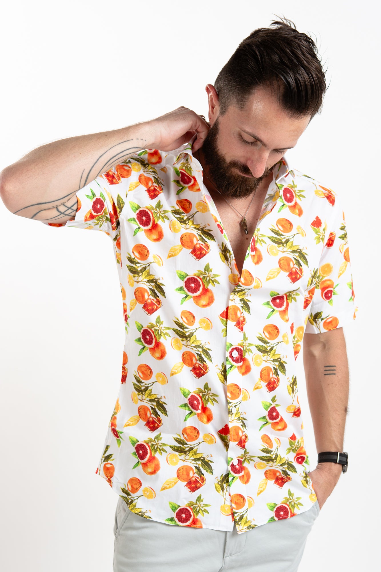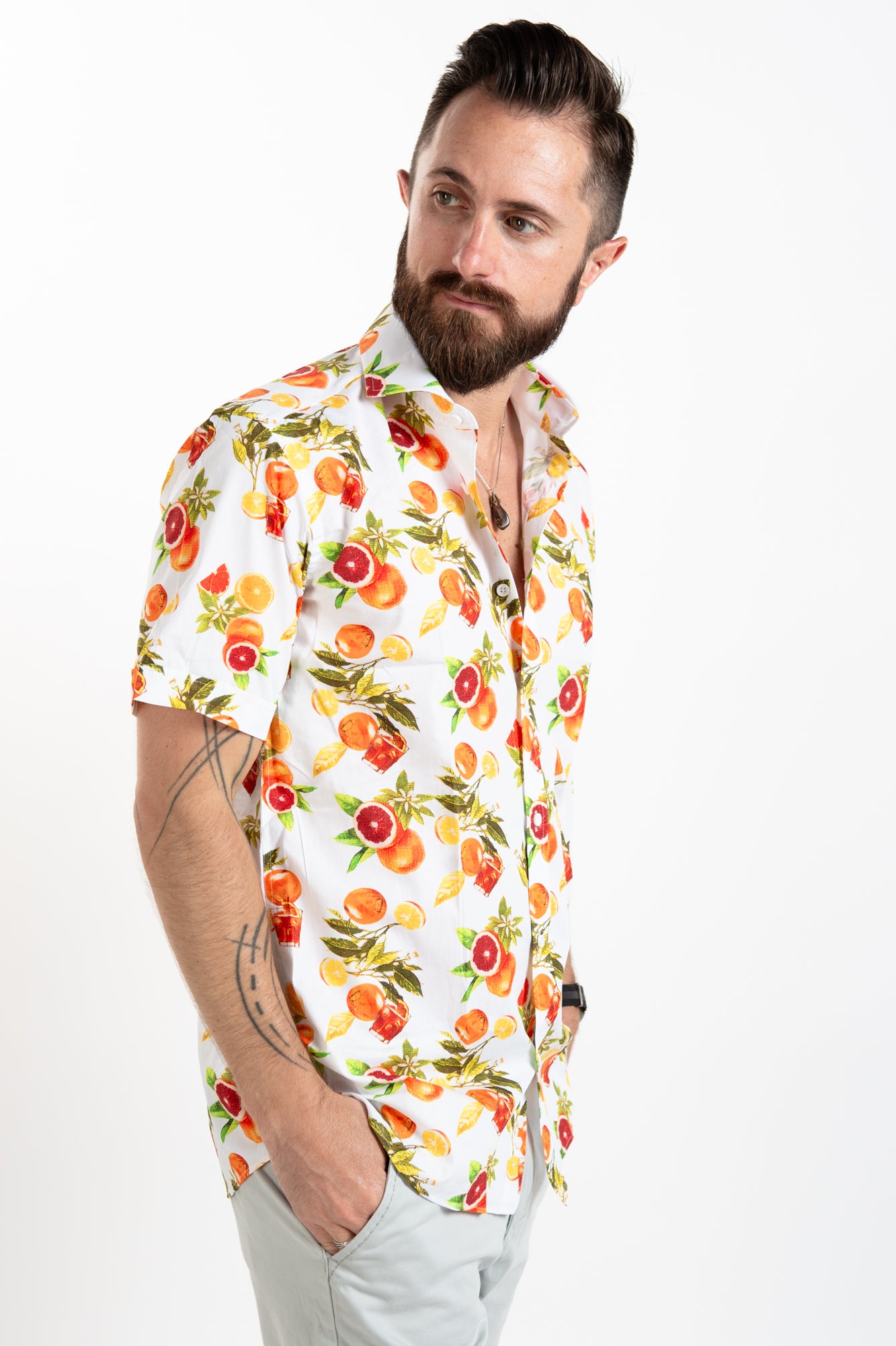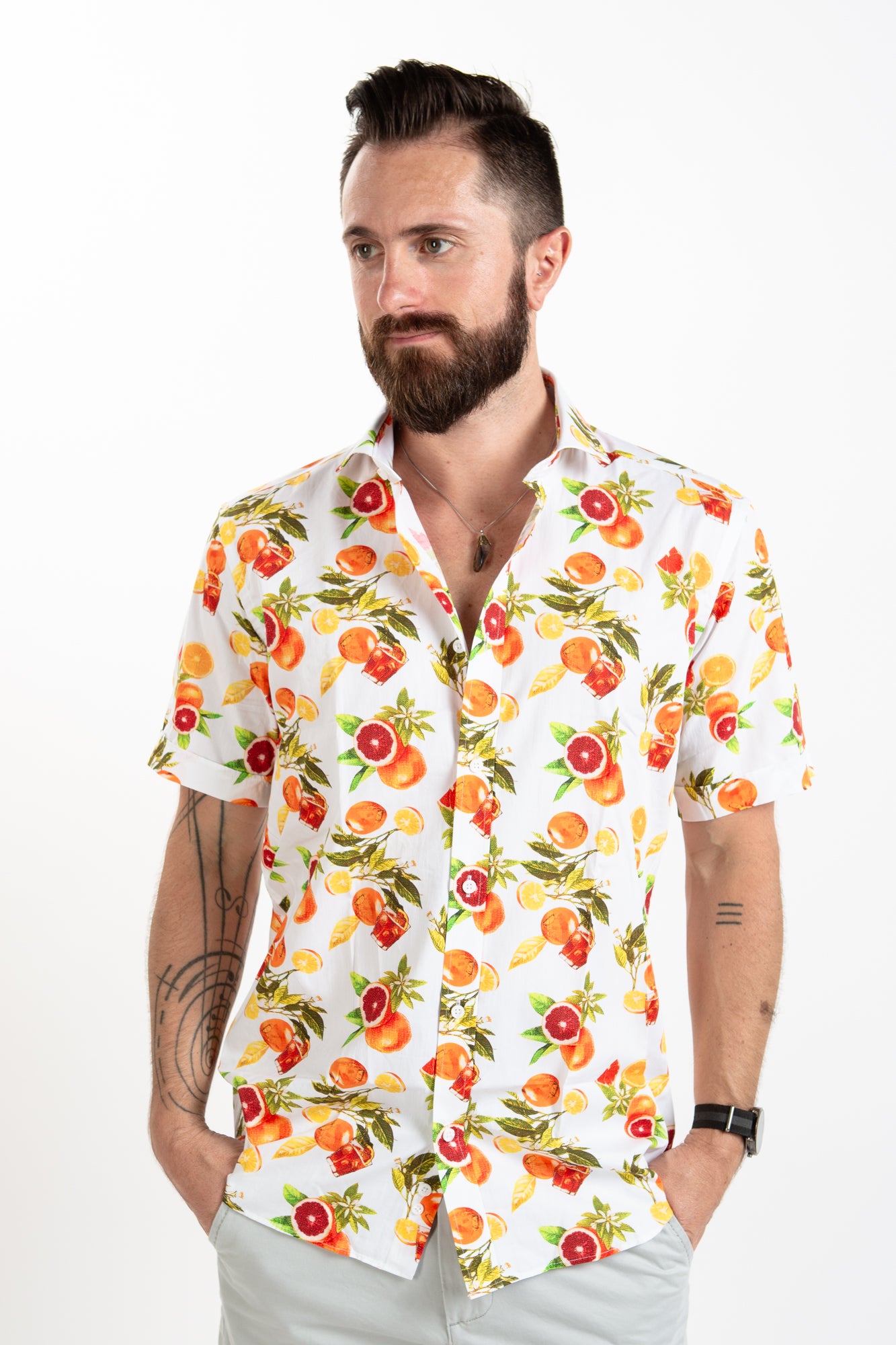 Are you ready to show off your summer fun? Our SHORT SLEEVE SHIRT - POMELO is here to add pizzazz to your wardrobe! Crafted from 100% cotton, this button up print shirt will be sure to dress up any everyday look. Get ready to turn heads and be the talk of the town! (In a good way, of course!)