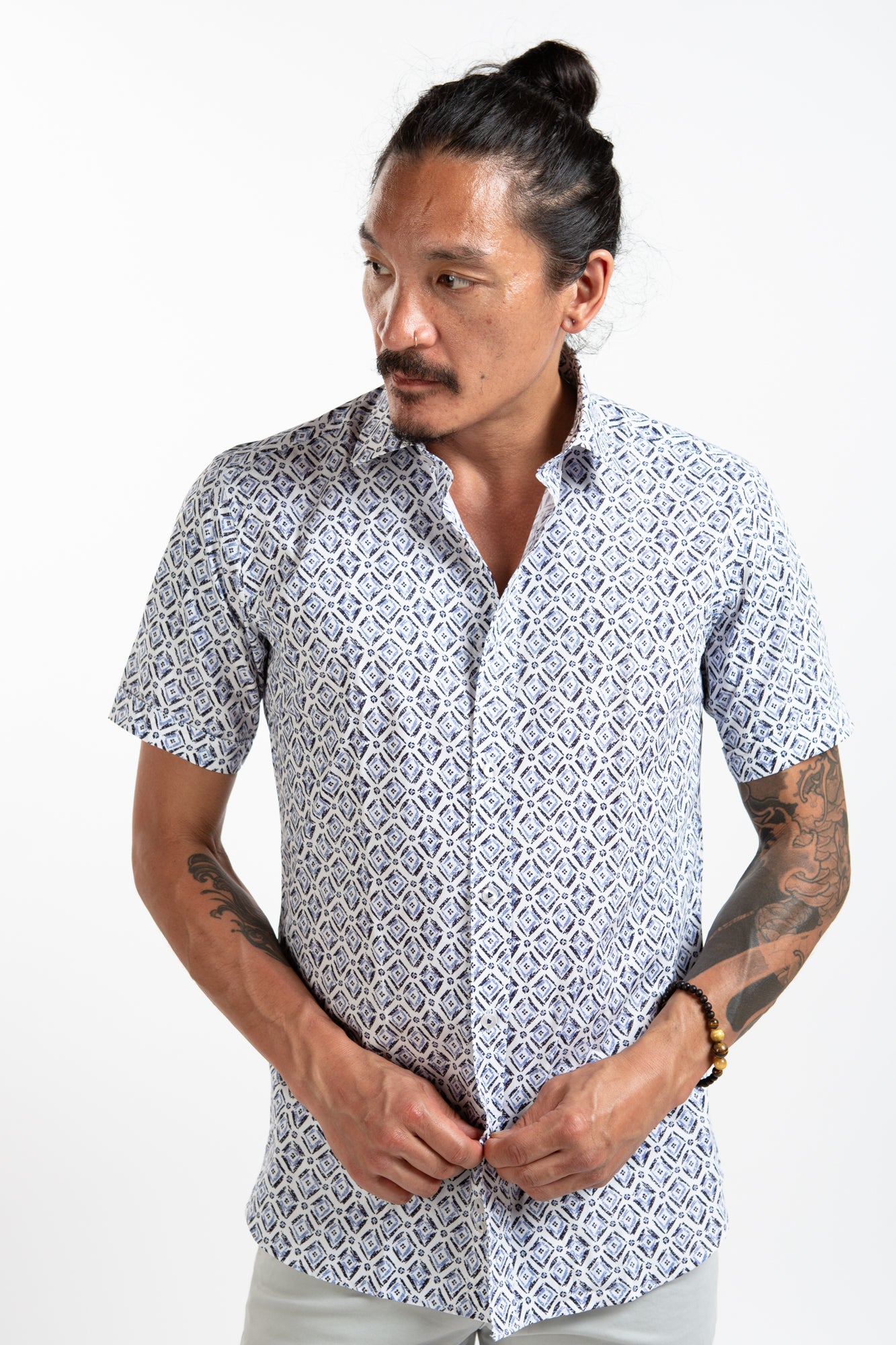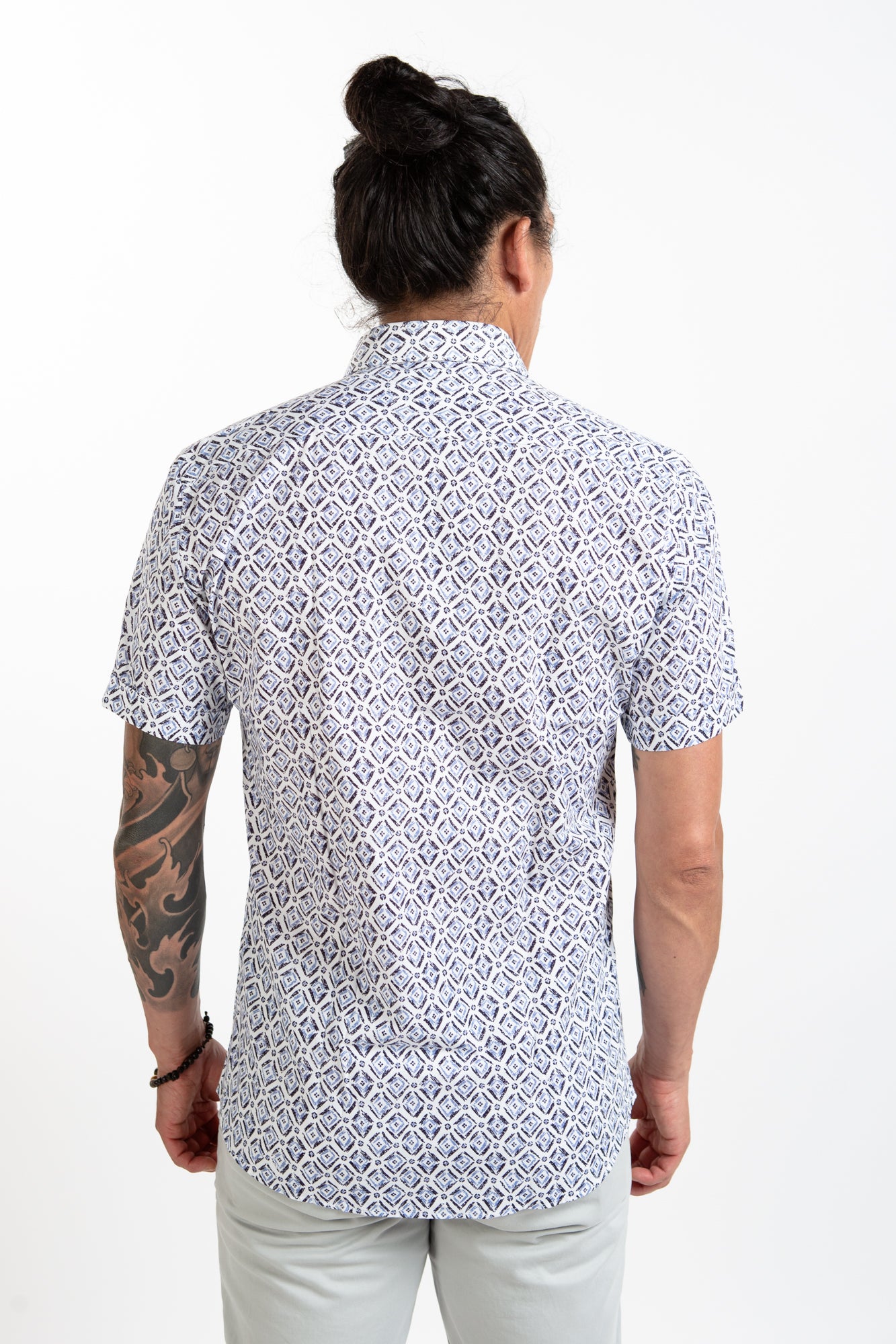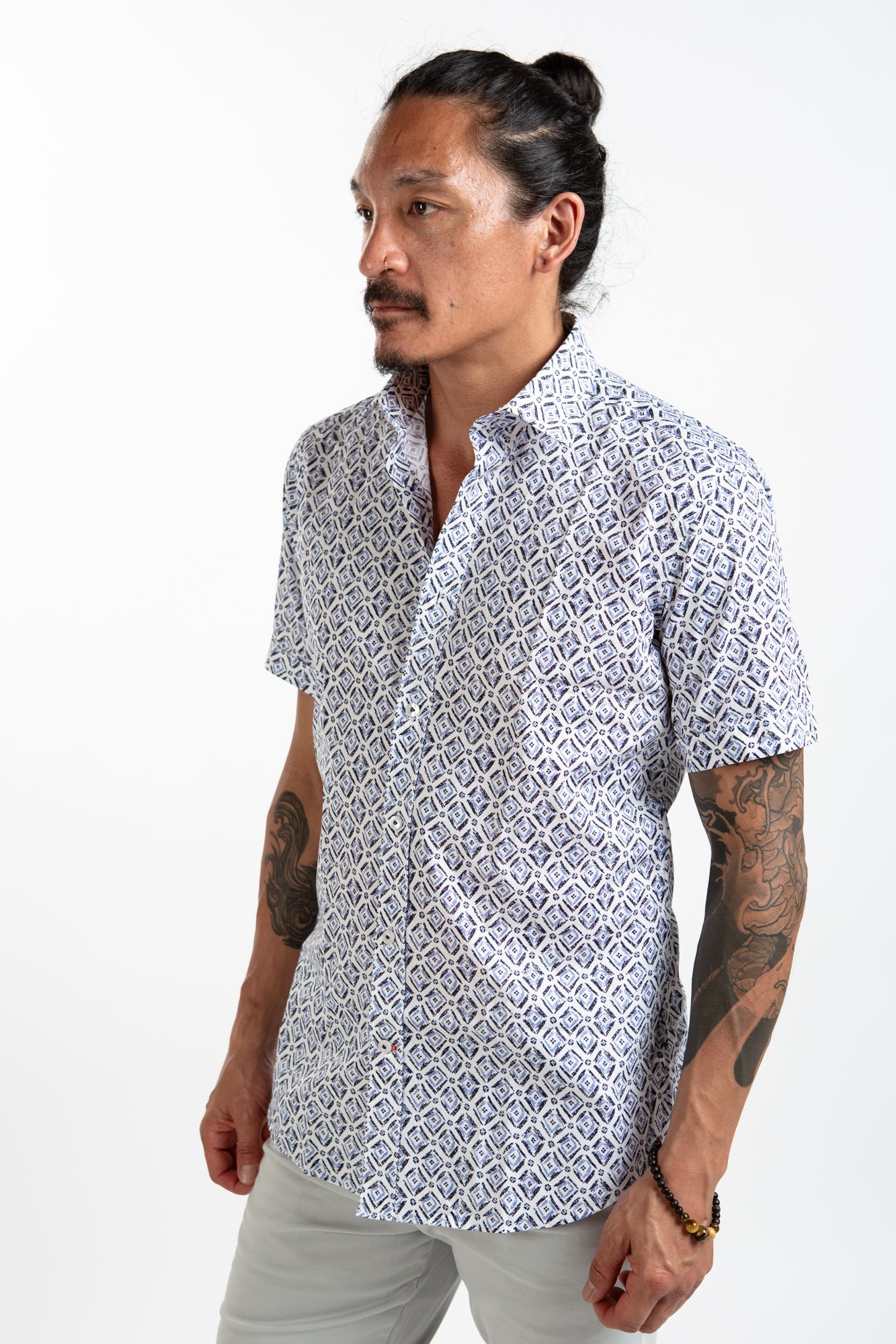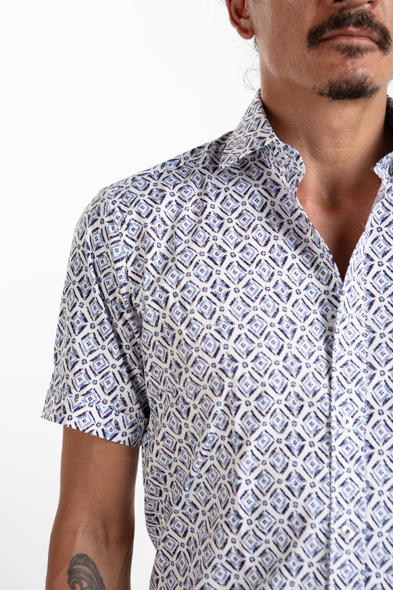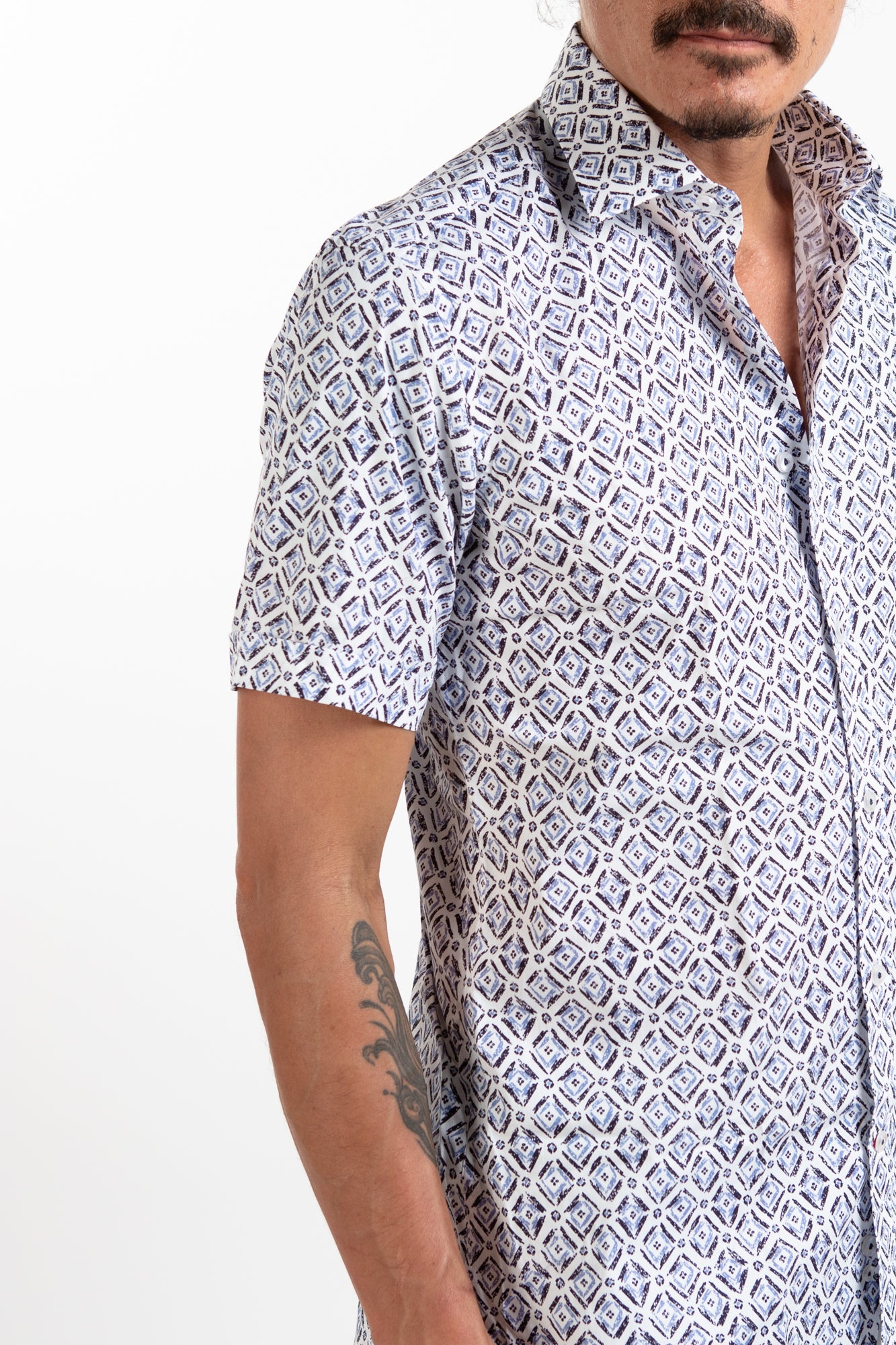 Are you ready to show off your summer fun? Our SHORT SLEEVE SHIRT - RETICOLO is here to add pizzazz to your wardrobe! Crafted from 100% cotton, this button up print shirt will be sure to dress up any everyday look. Get ready to turn heads and be the talk of the town! (In a good way, of course!)
