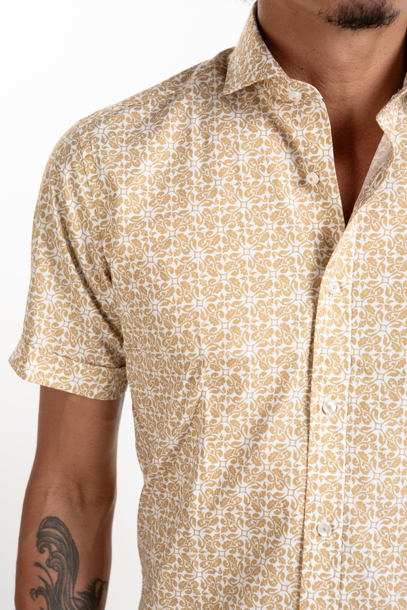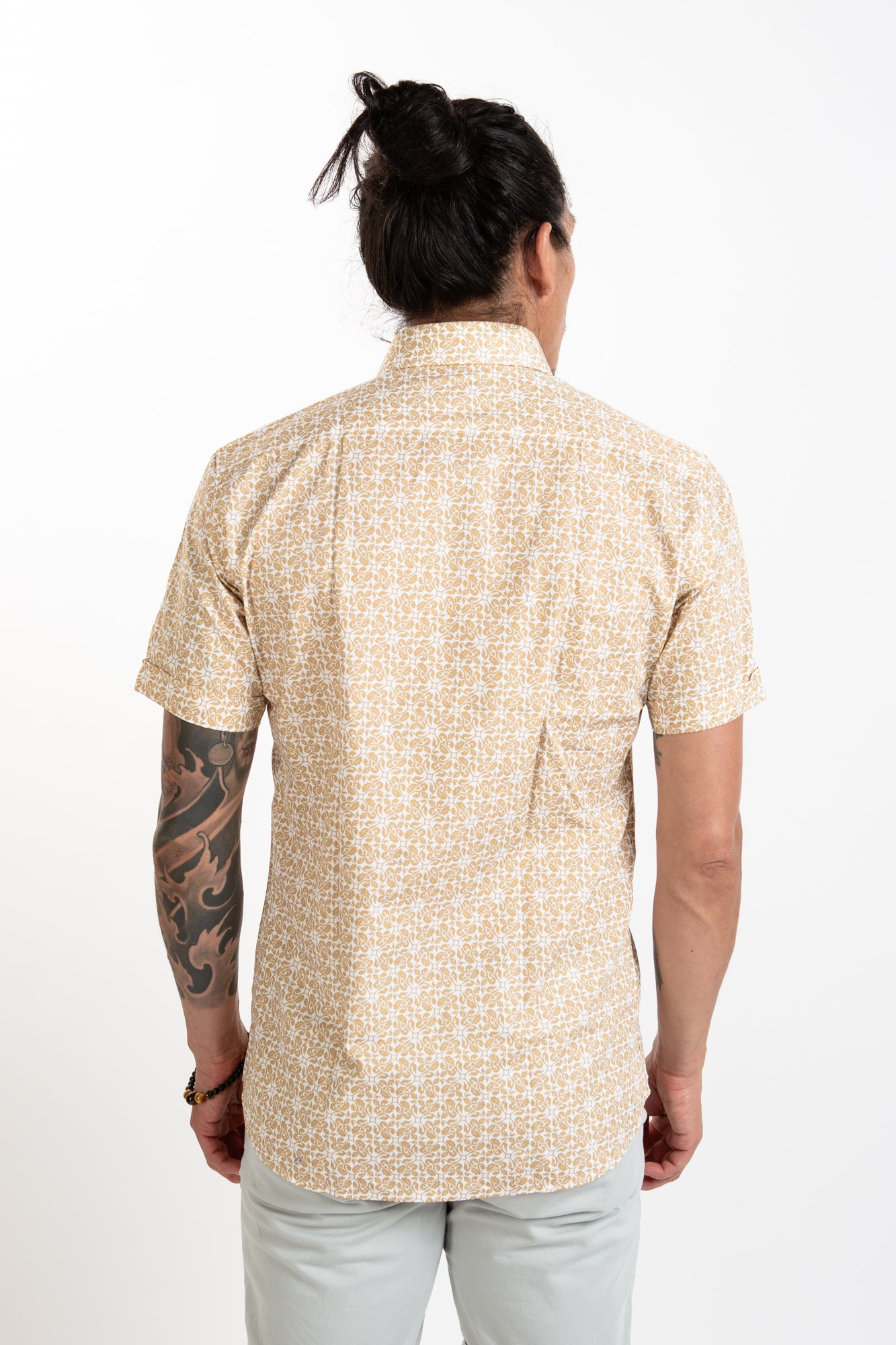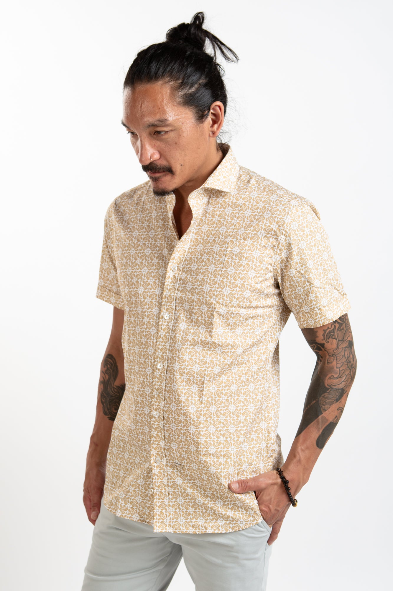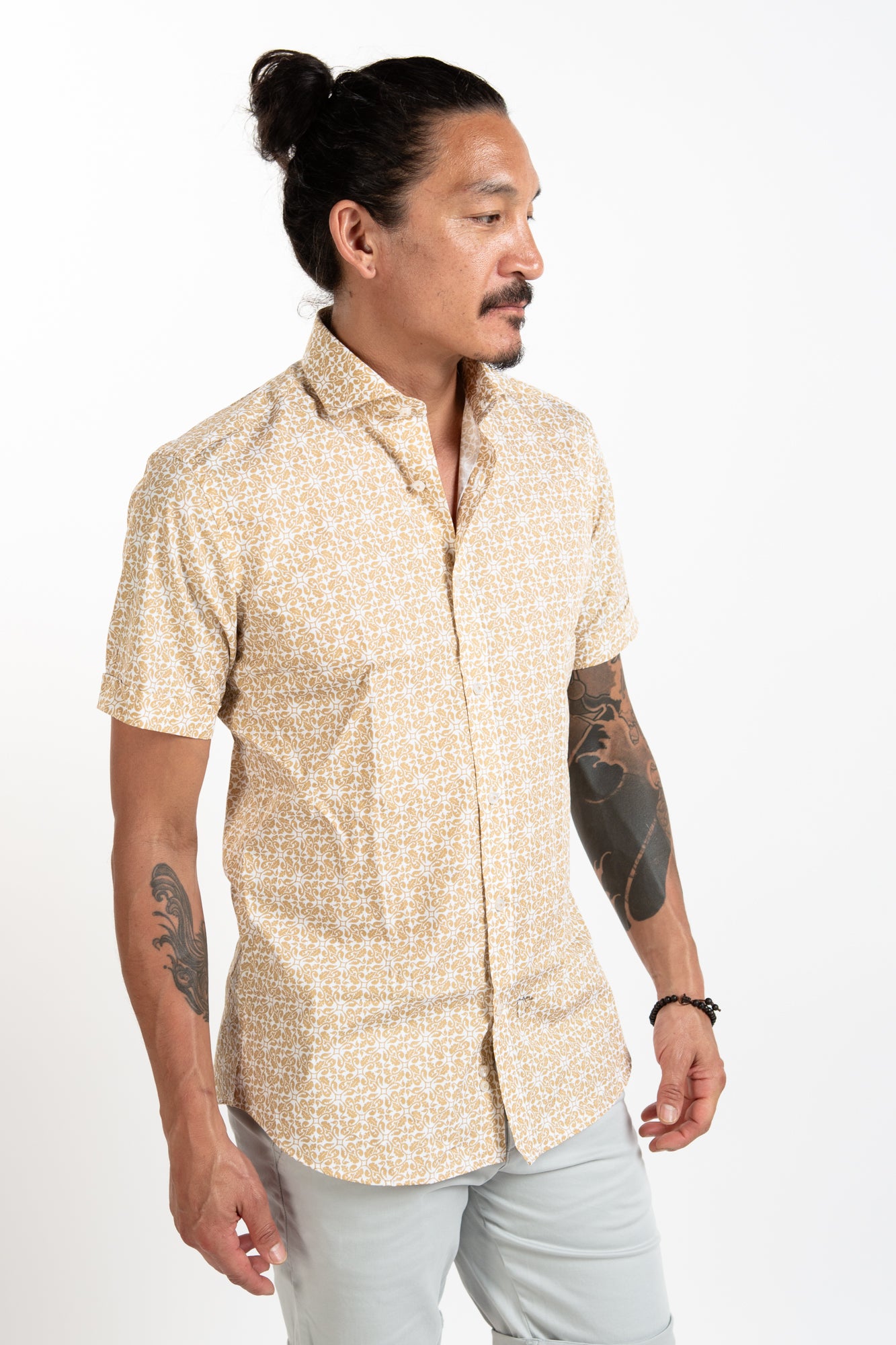 Are you ready to show off your summer fun? Our SHORT SLEEVE SHIRT - TAN SKROLL is here to add pizzazz to your wardrobe! Crafted from 100% cotton, this button up print shirt will be sure to dress up any everyday look. Get ready to turn heads and be the talk of the town! (In a good way, of course!)