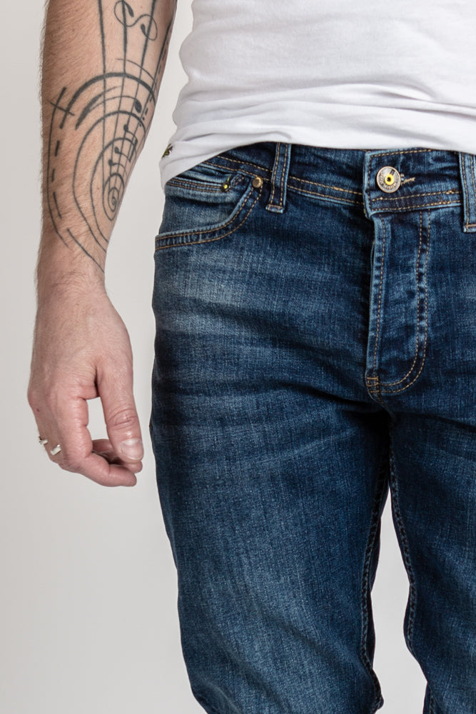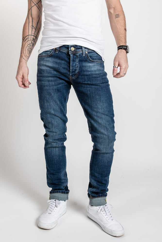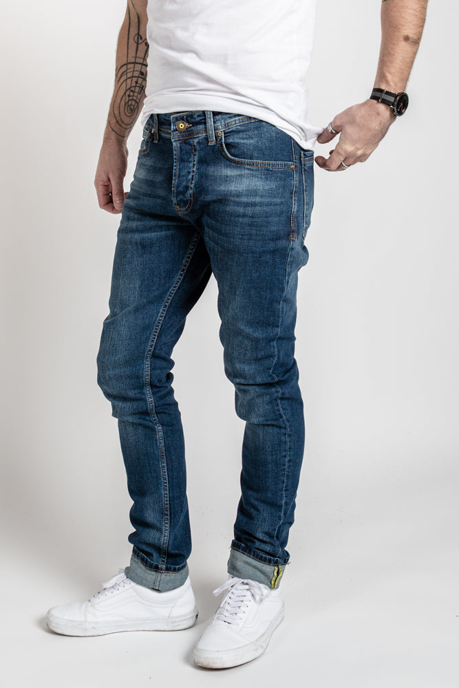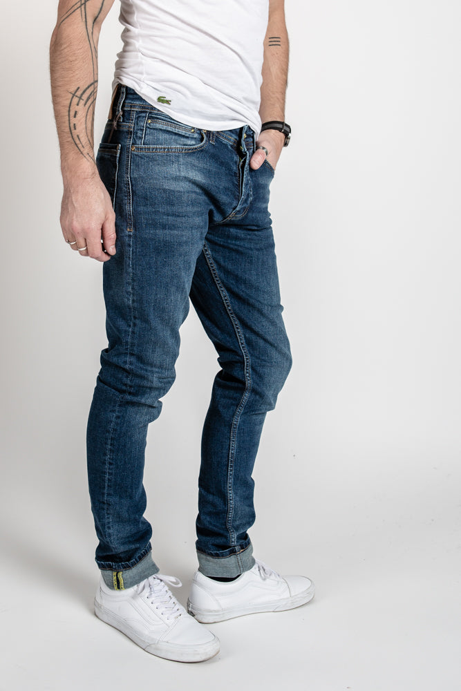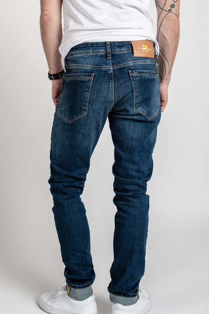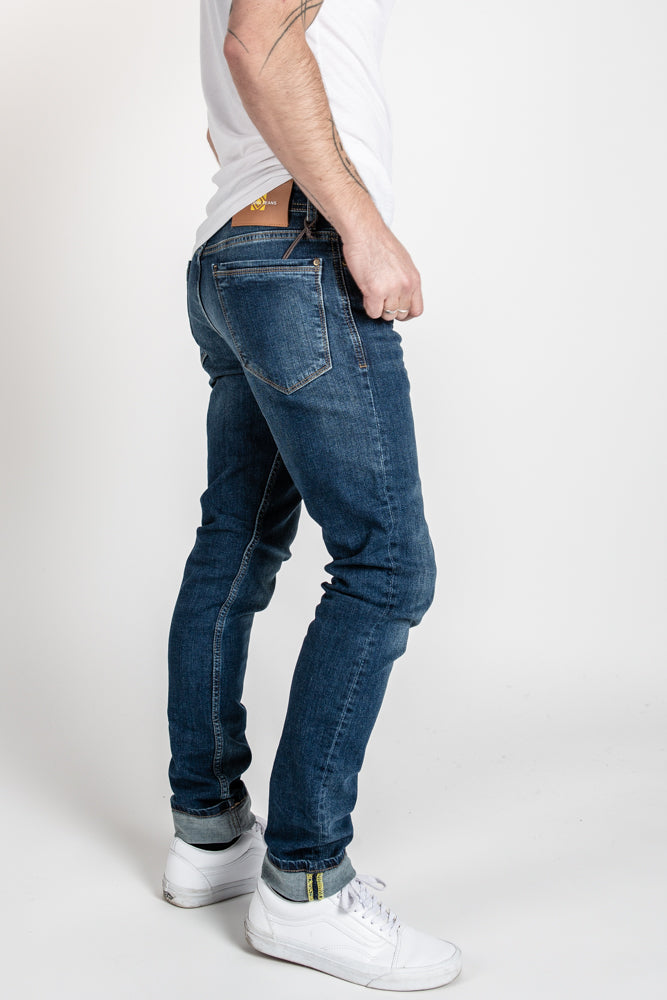Men's slim fit dark wash denim. Super stretchy and comfortable.