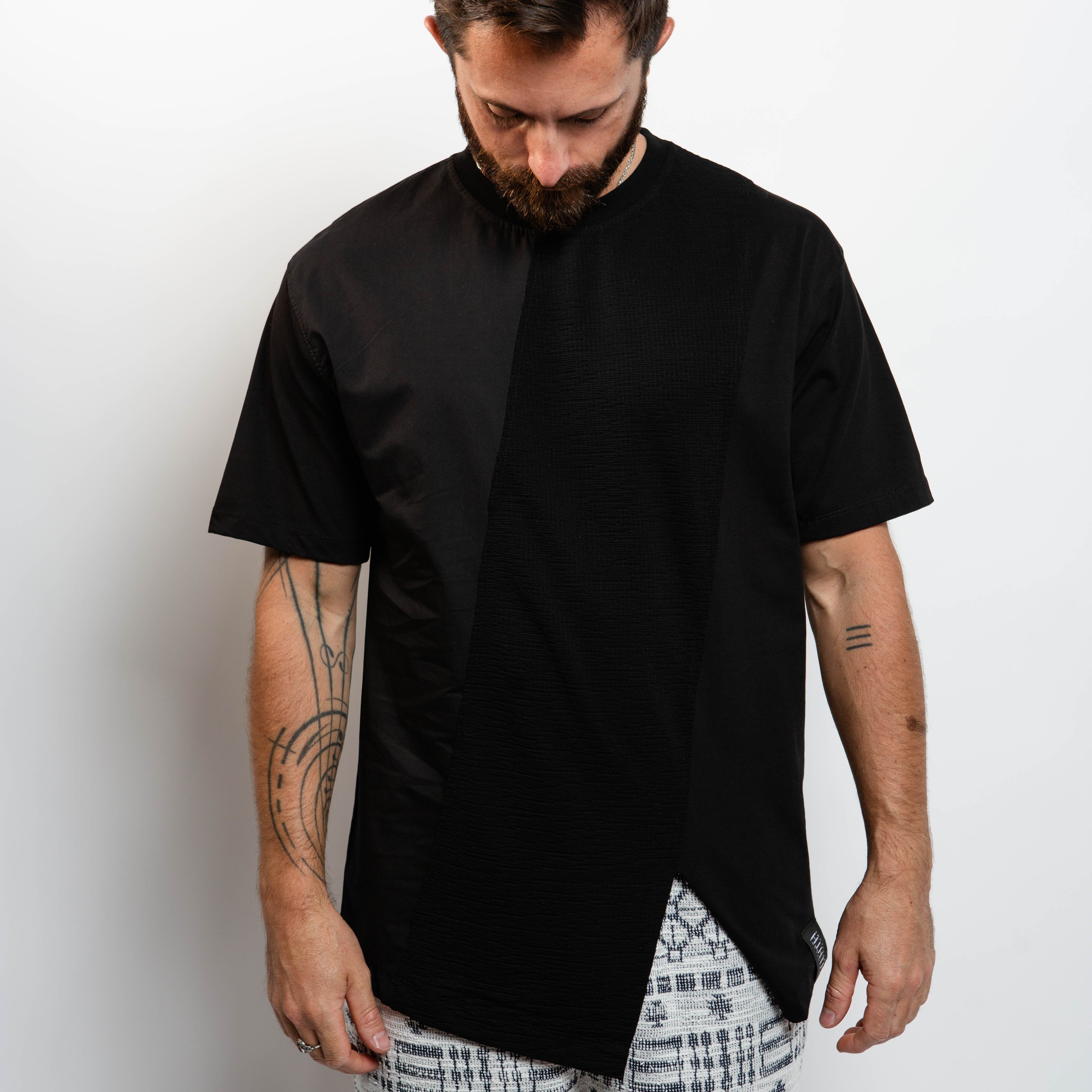 Designed for the ones who move in rhythm but don’t follow the crowd. The Split Panel Tee blends techwear-inspired paneling with a bold street aesthetic, making it a staple for DJs, creatives, and performers who thrive under the lights—or in the shadows.