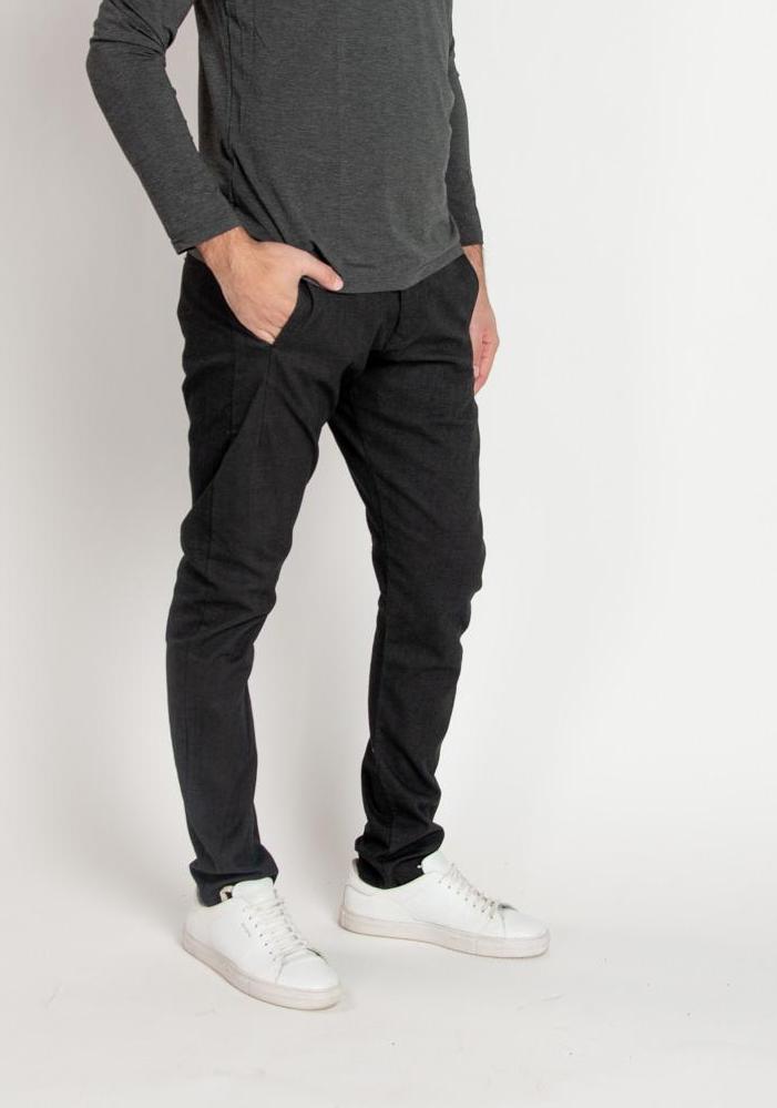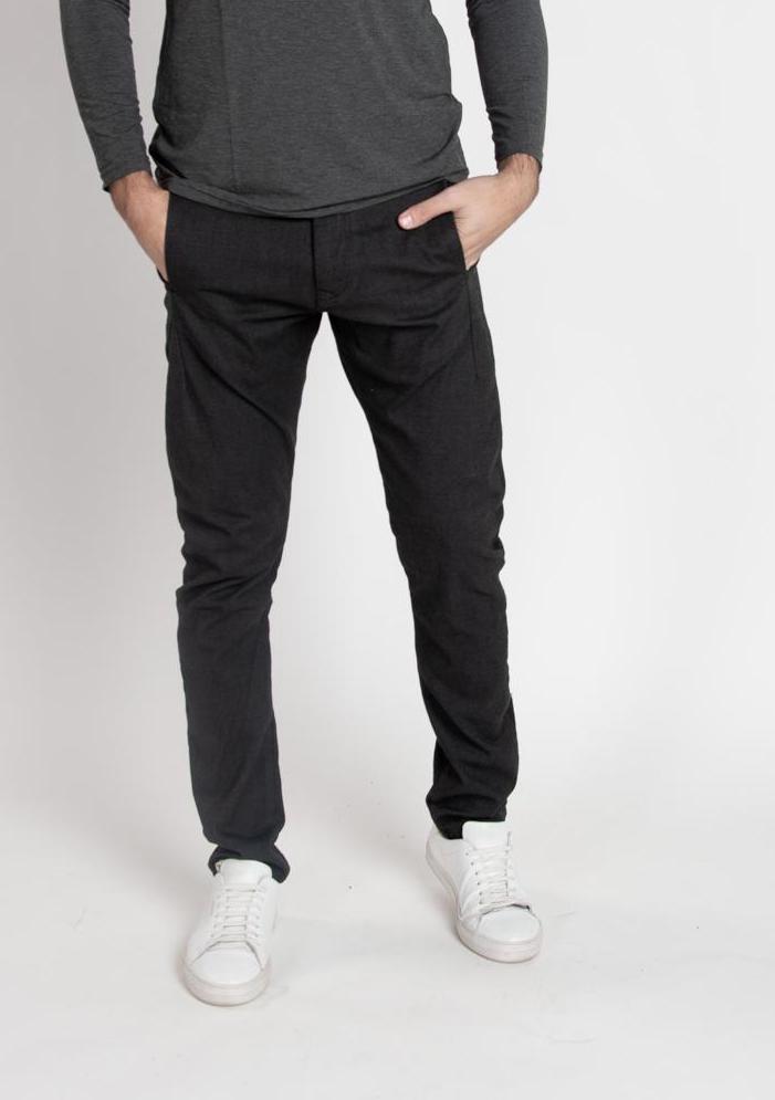 Tapered mens trousers in charcoal. super stretchy made for everyday wear.