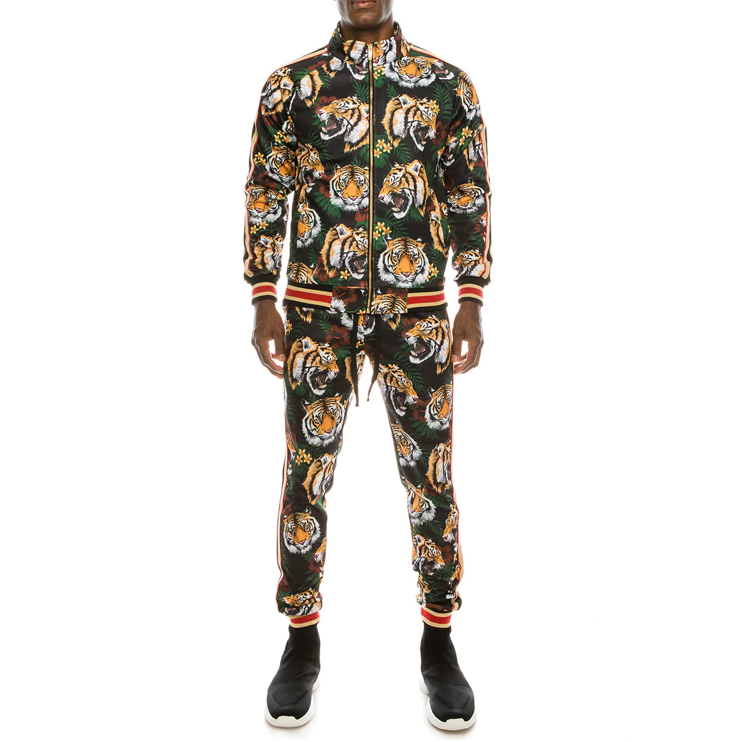 Tiger Floral Track Suit - Black