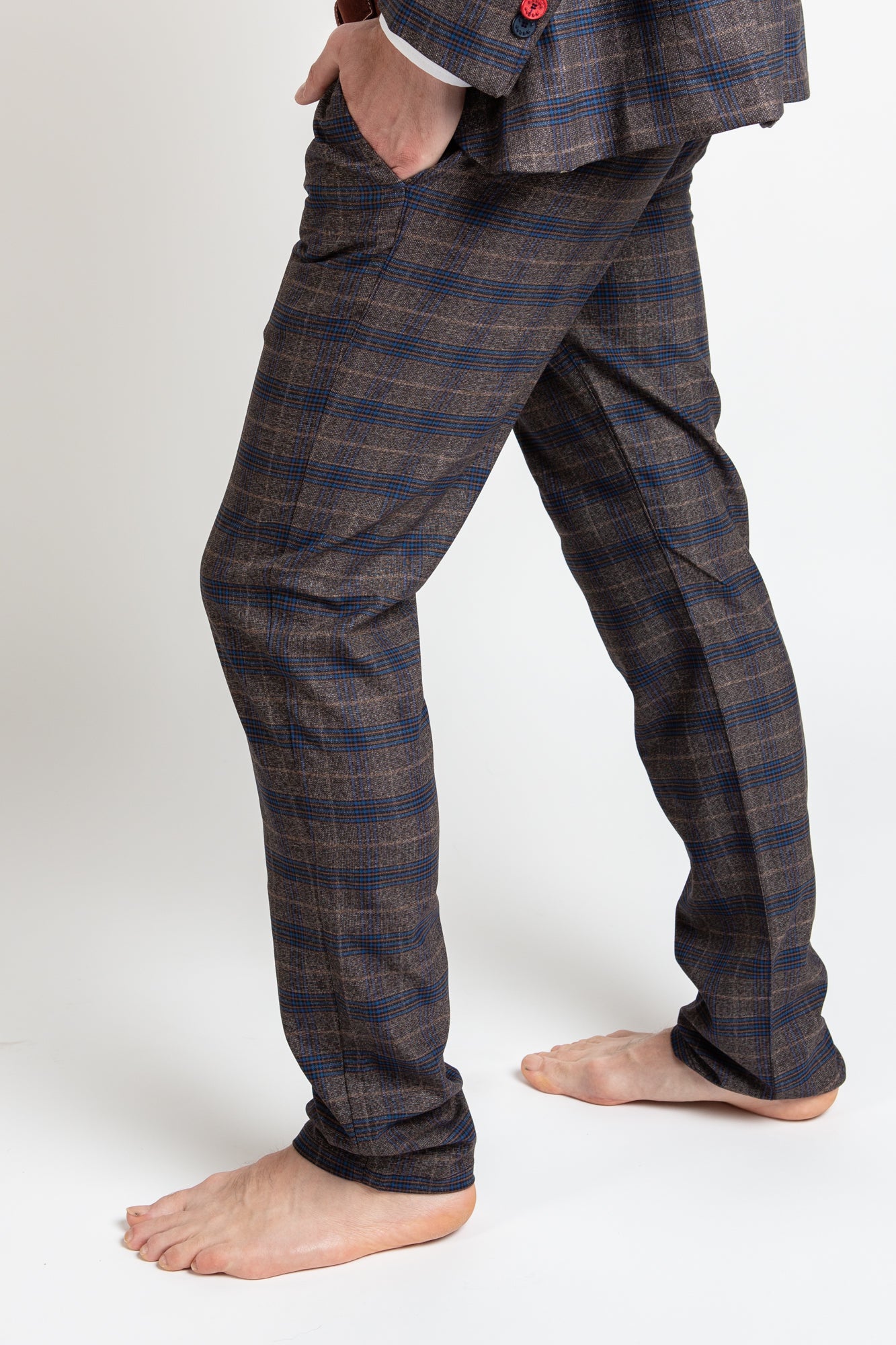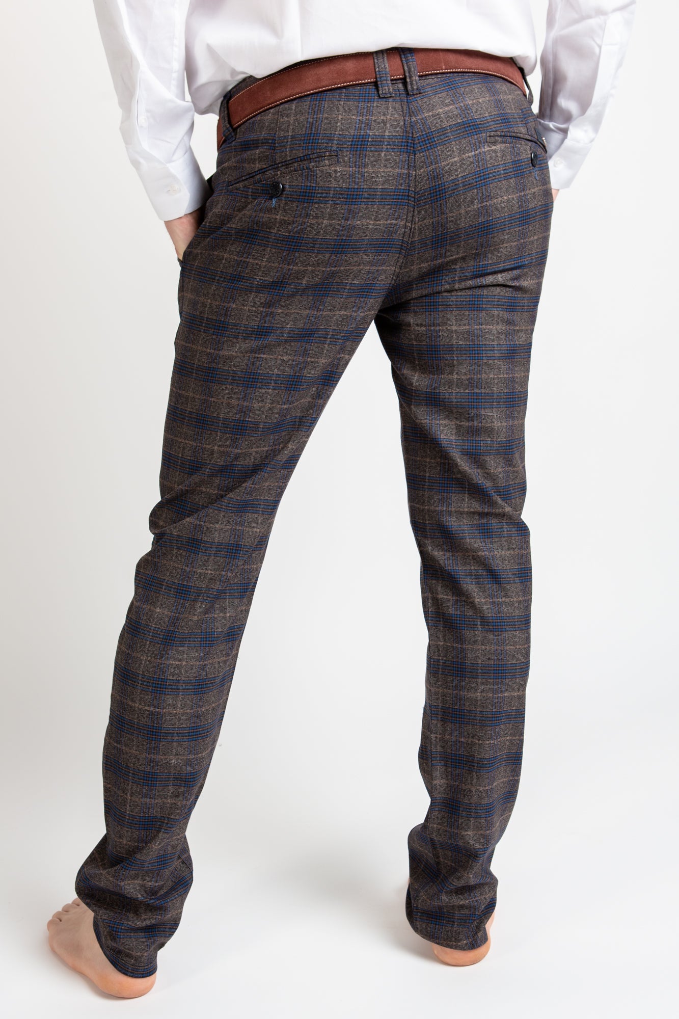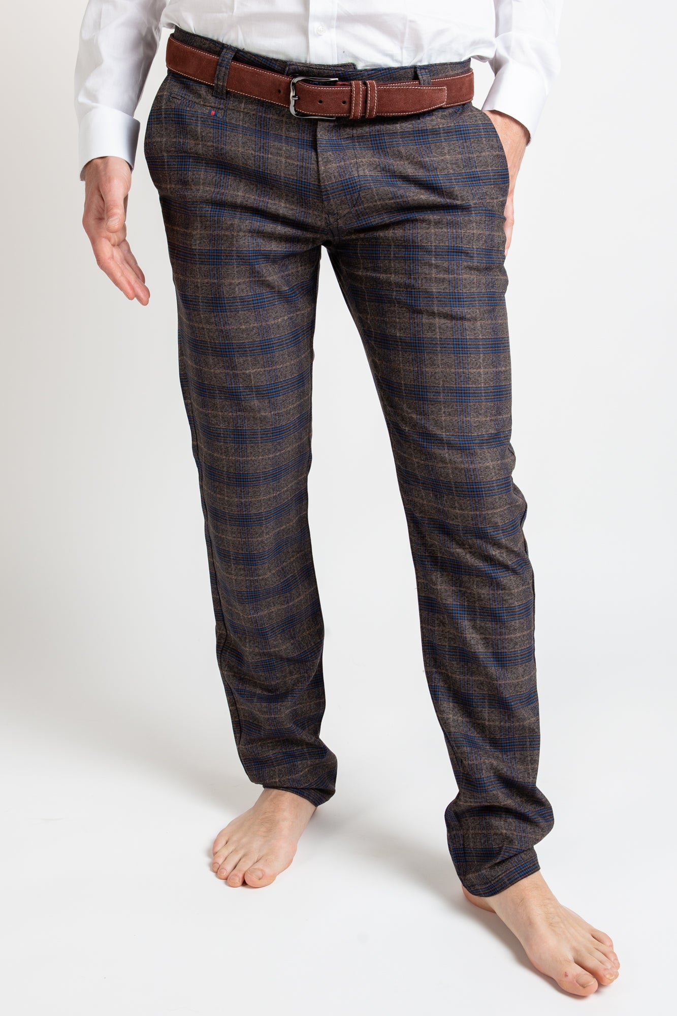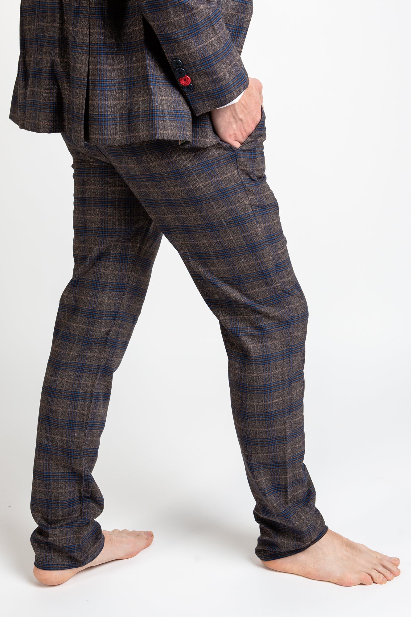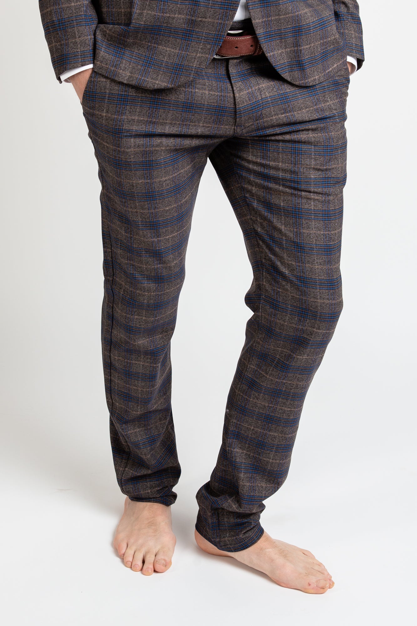 Discover your style in these Checkered TROUSERS . Crafted from checkered brown fabric, these trousers offer a matching blazer, suit pants, and a zipper closure for a perfect fit. Elevate your formalwear with this stylish set.