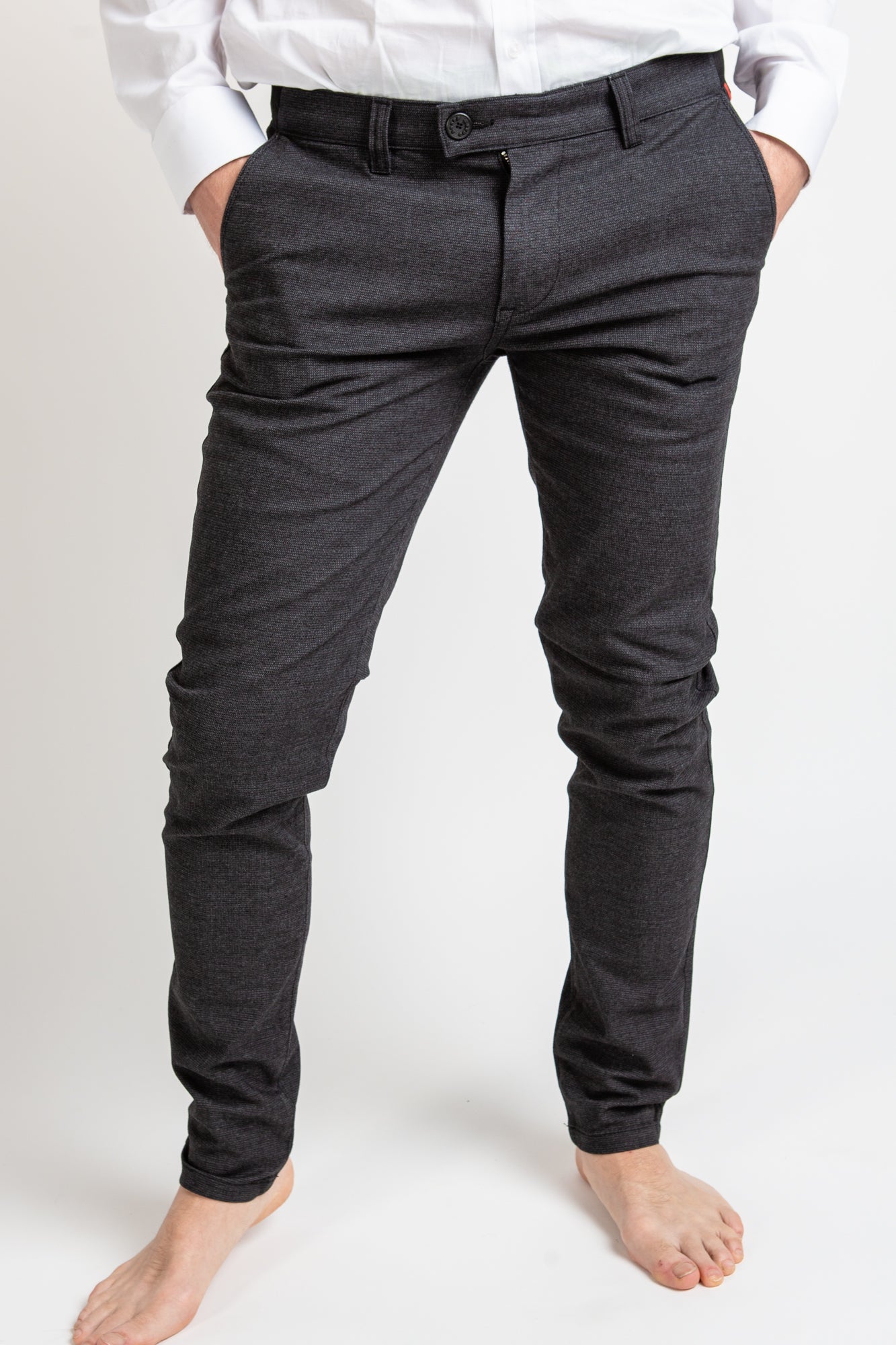 These grey trousers are the perfect dress pants for almost any occasion. Fitted and tapered to fit perfectly, these pants provide good stretch for maximum comfort. The dark grey colour offers a classic and timeless look.