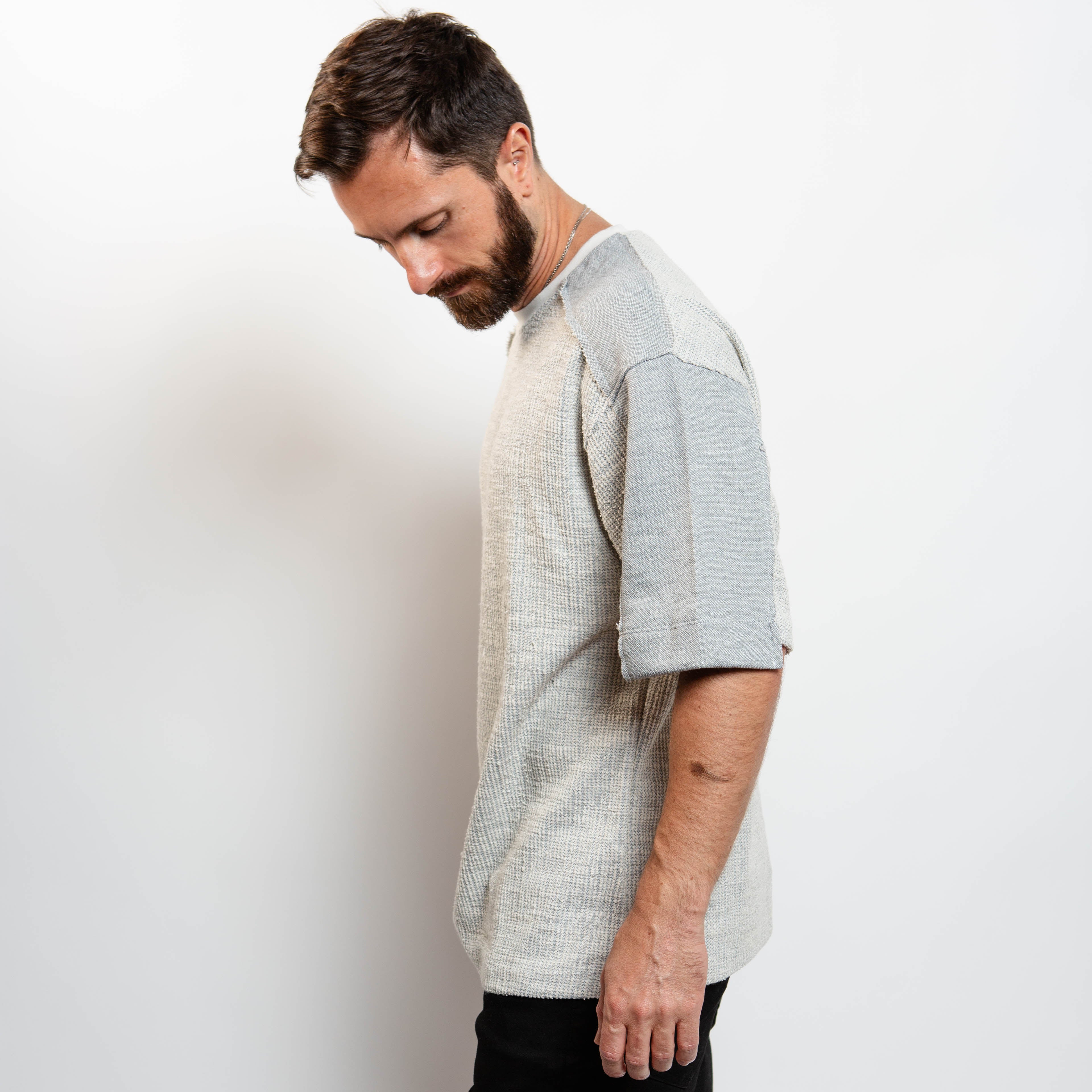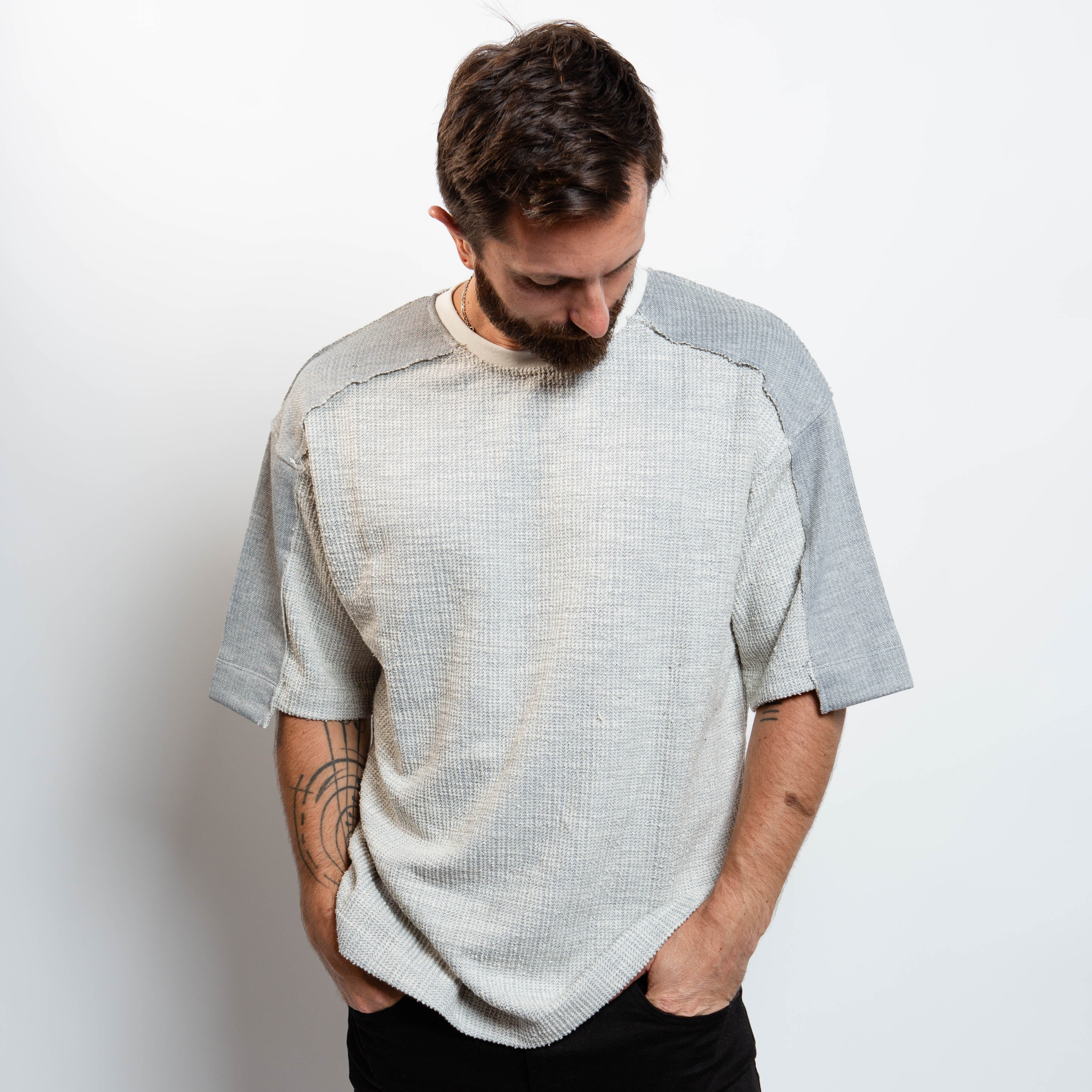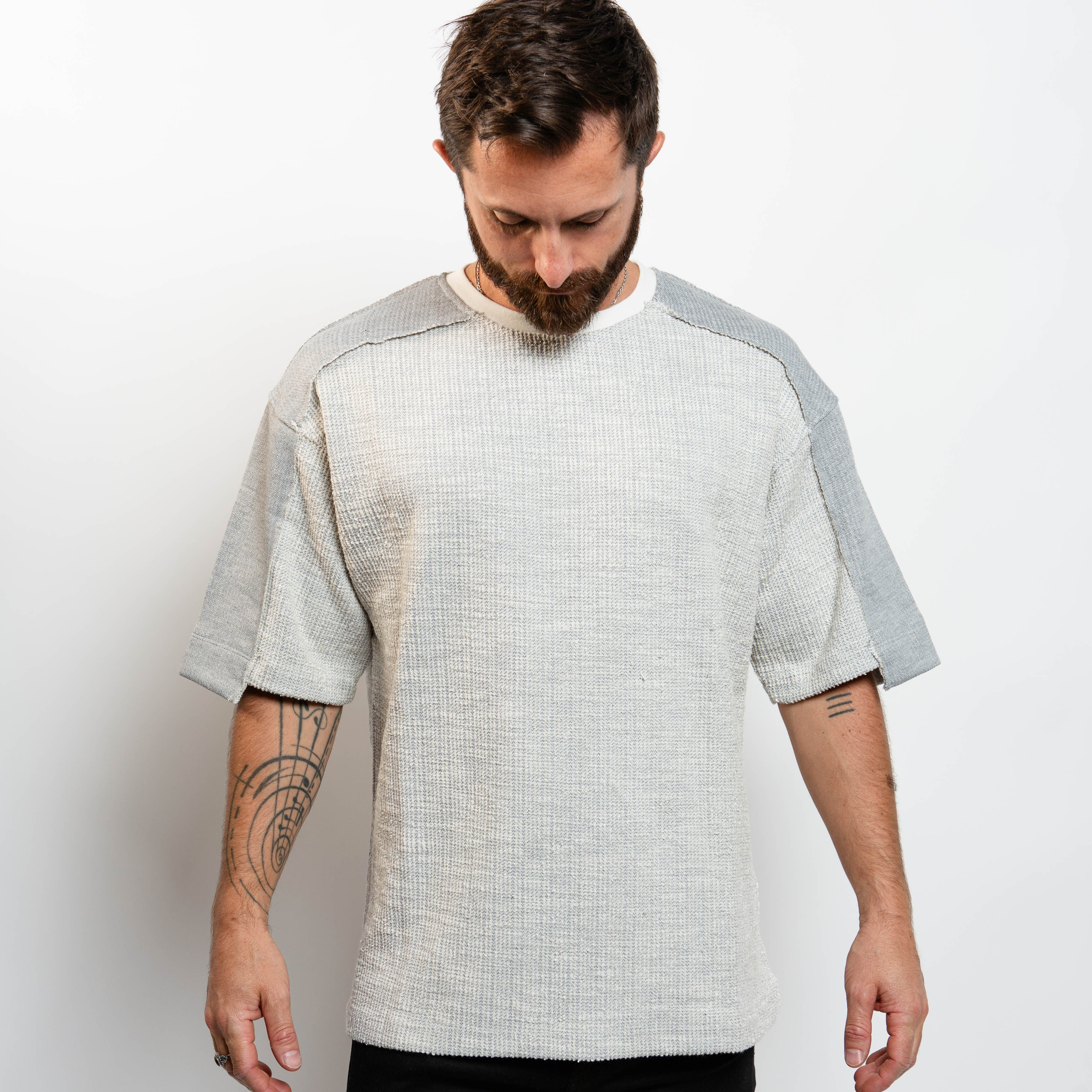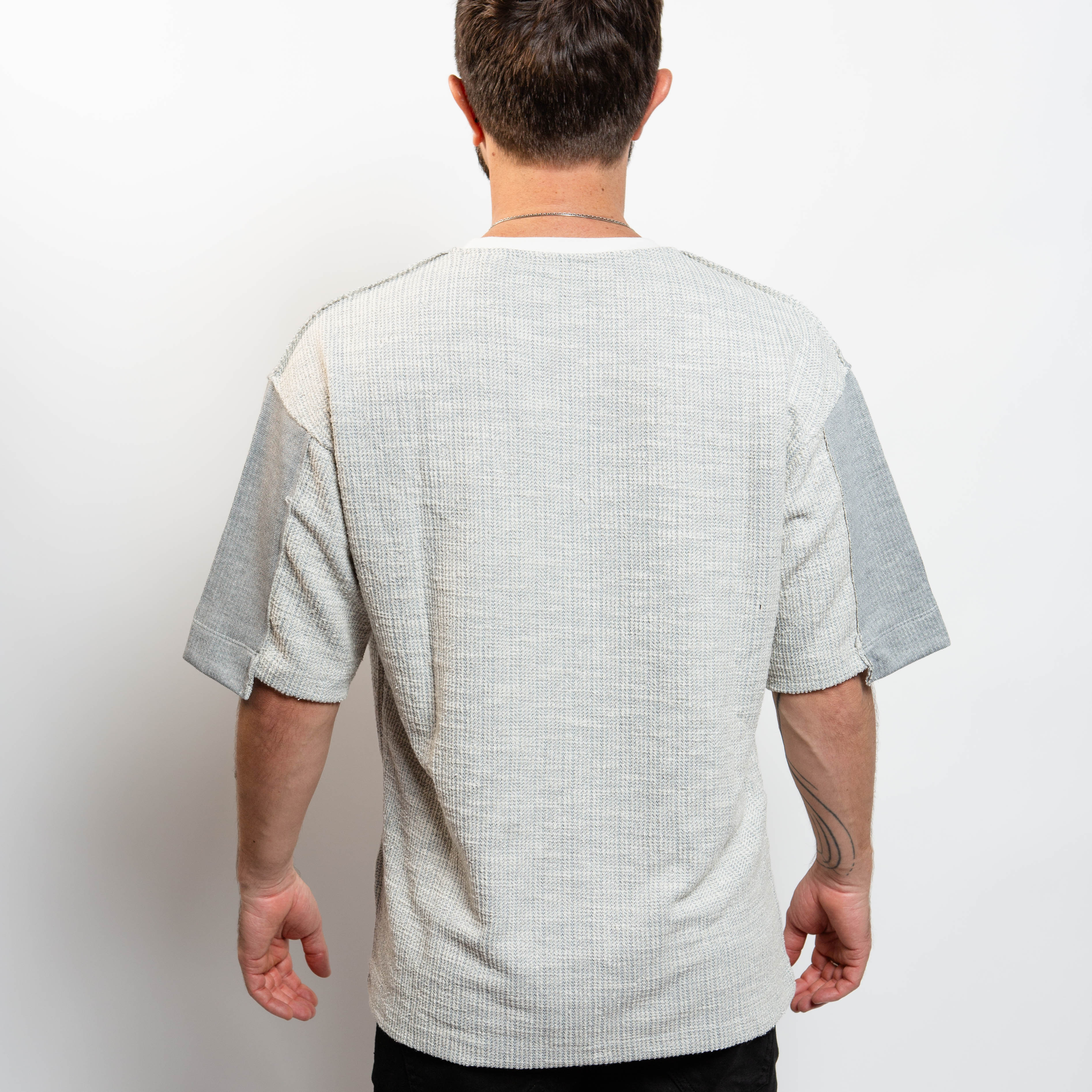 Elevate your everyday with this Waffle Knit Oversized Tee in a crisp ice grey. Crafted from a breathable cotton-blend fabric, this tee features a dimensional waffle texture that adds subtle structure and depth. The oversized silhouette is cut for comfort and modern edge, making it perfect for layering or wearing on its own.