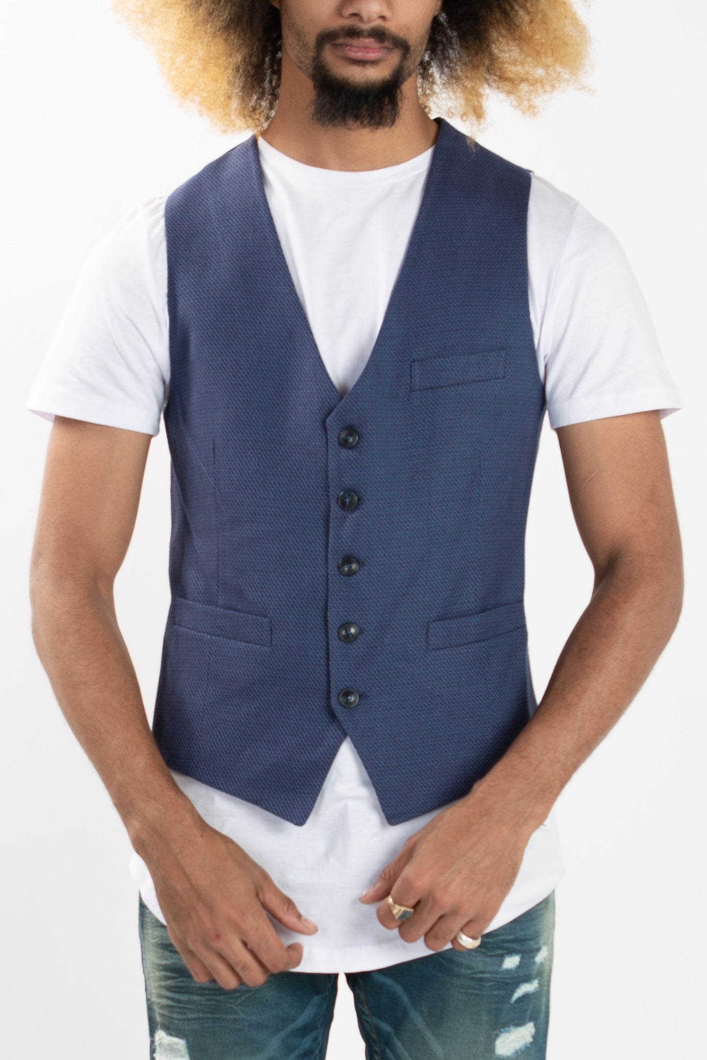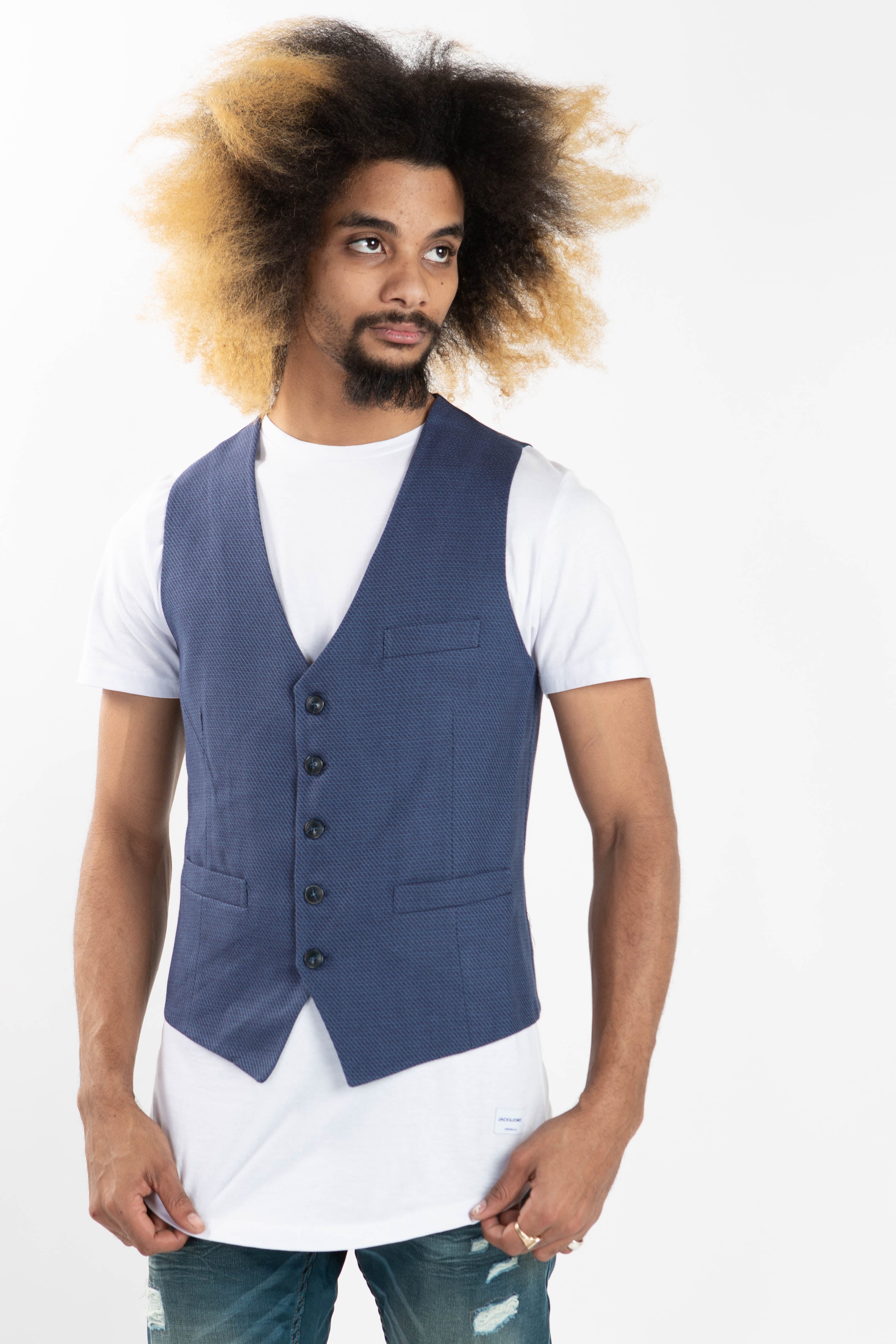 Fashion vintage sleeveless blue colour vests for men . Slim fit 5 buttons closure waistcoat. Can be worn over a t-shirt, long sleeve shirt or dress shirt.