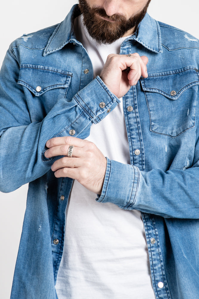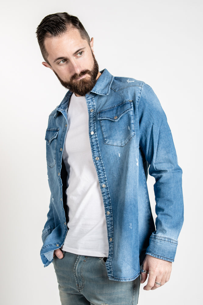 This Medium wash, Western-inspired shirt is the perfect foundation to casual ensembles. It's cut in a slim fit to ensure a neat tailored appearance. The pure cotton design is both lightweight and breathable for all-day comfortable wear.