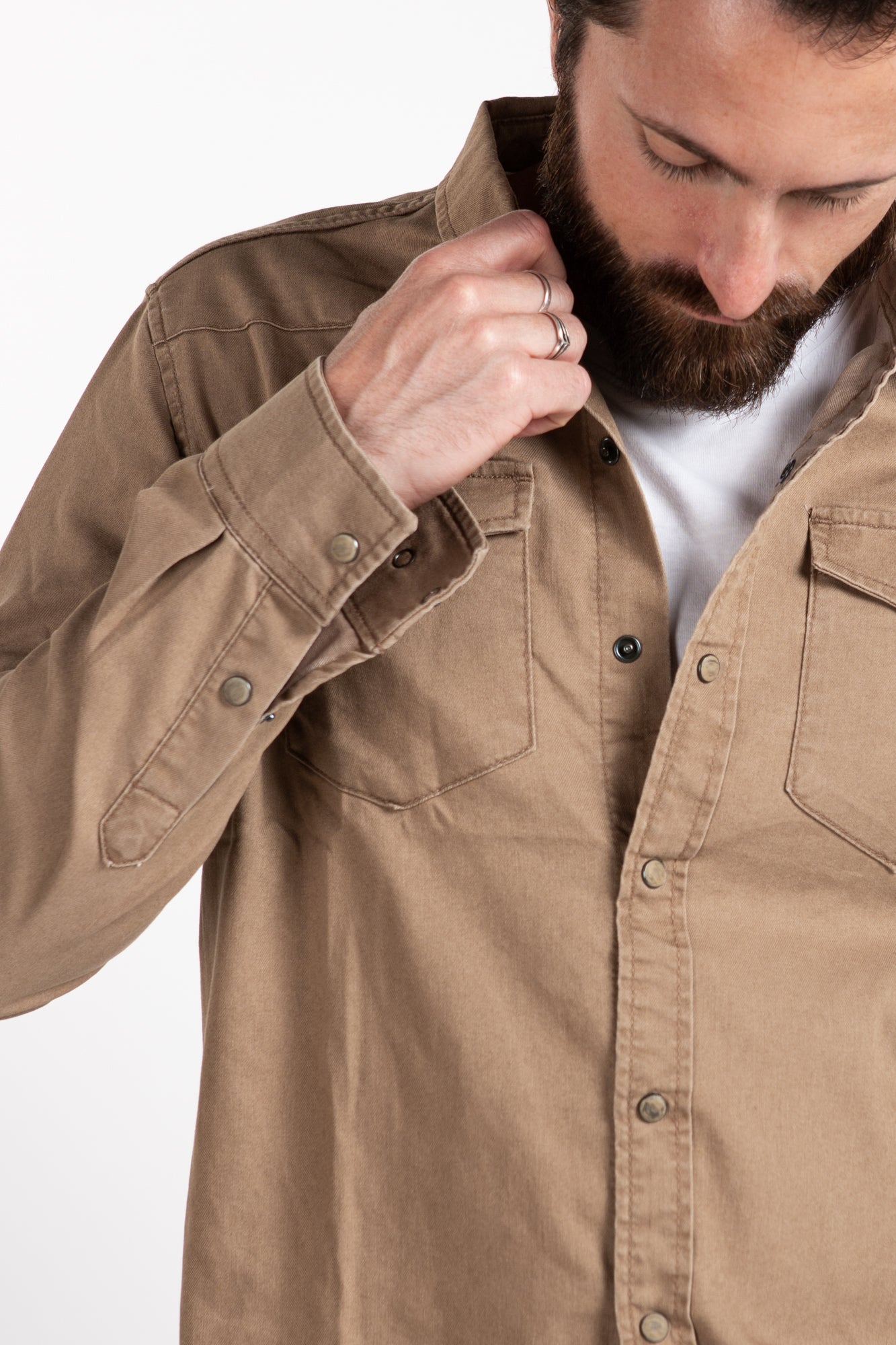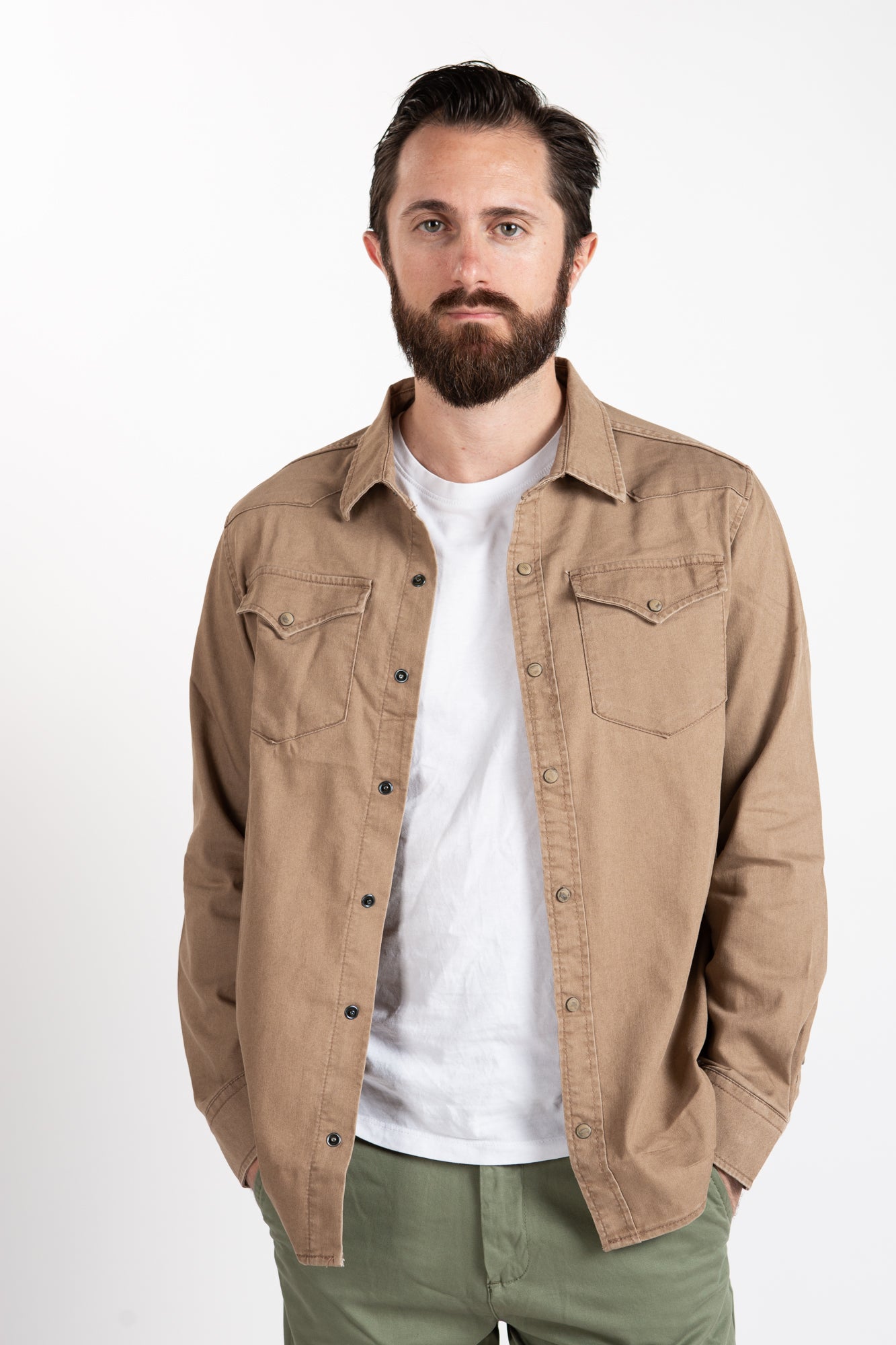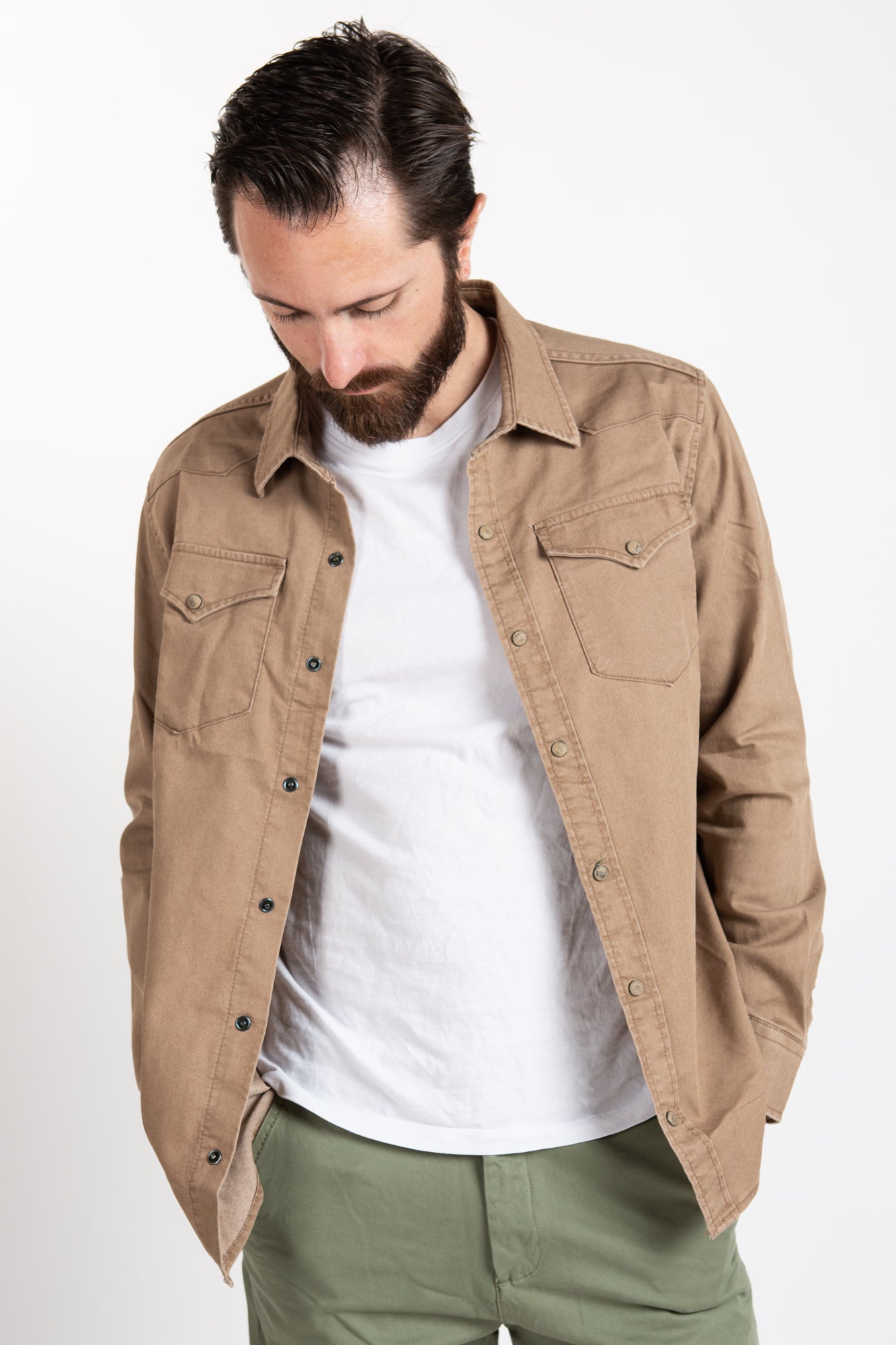This tan wash, Western-inspired shirt is the perfect foundation to casual ensembles. It's cut in a slim fit to ensure a neat tailored appearance. The pure cotton design is both lightweight and breathable for all-day comfortable wear.