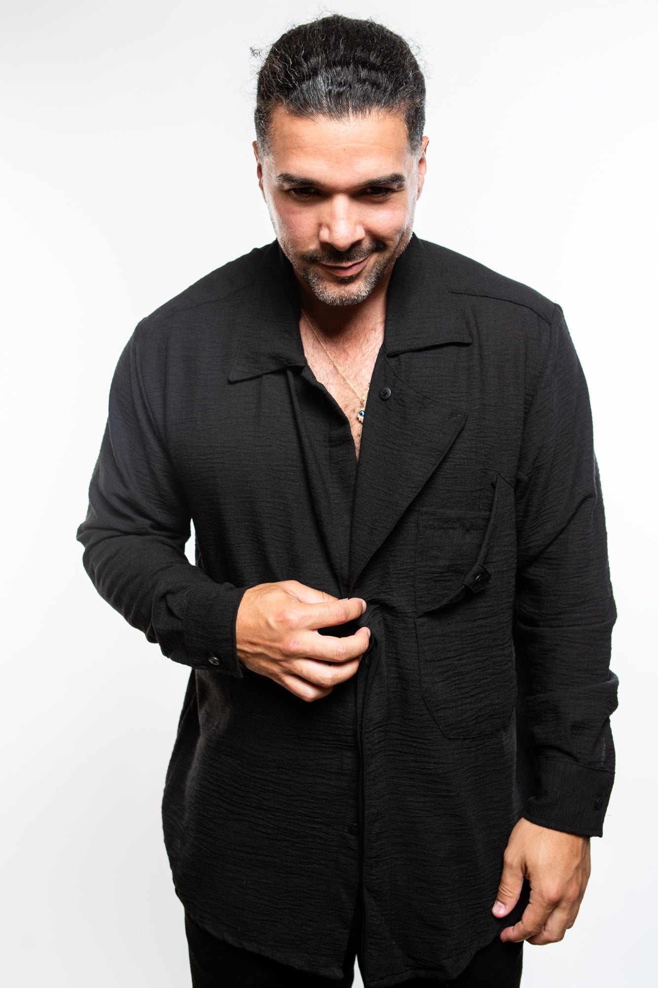 Elevate your wardrobe with our XPent Dress Shirt in Bordo Nero. Its edgy, asymmetrical design and sleek black color exude fashion-forward sophistication. With long sleeves and a button-up style, this shirt adds a touch of flair to any look. Indulge in luxury fashion with this exclusive piece.